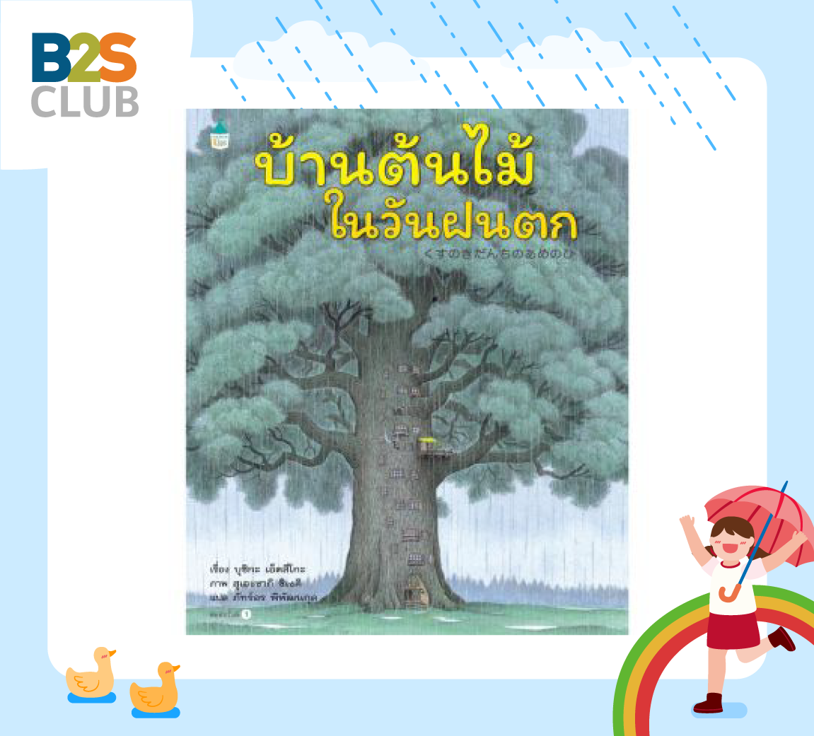 หนึ่งในนิทานชุดบ้านต้นไม้สุดโปรดของเด็กๆ ที่มาเล่าเรื่องราวขอบ้านต้นไม้ในวันฝนตก ที่เหล่าสัตว์ต่างๆล้วนดีใจที่ฝนตกและทำกิจกรรมต่างๆแตกต่างกัน ในบ้านต้นไม้แต่ละชั้น มาดูกันว่า สมาชิกของบ้านต้นไม้ในวันฝนตกแต่ละชั้น ทำอะไรกันบ้างนะ ชวนลูกนอนอ่านพร้อมมองสายฝนที่น่าต่างๆสร้างบรรยากาศแสนอบอุ่นของครอบครัวได้ดีไม่น้อยเลย