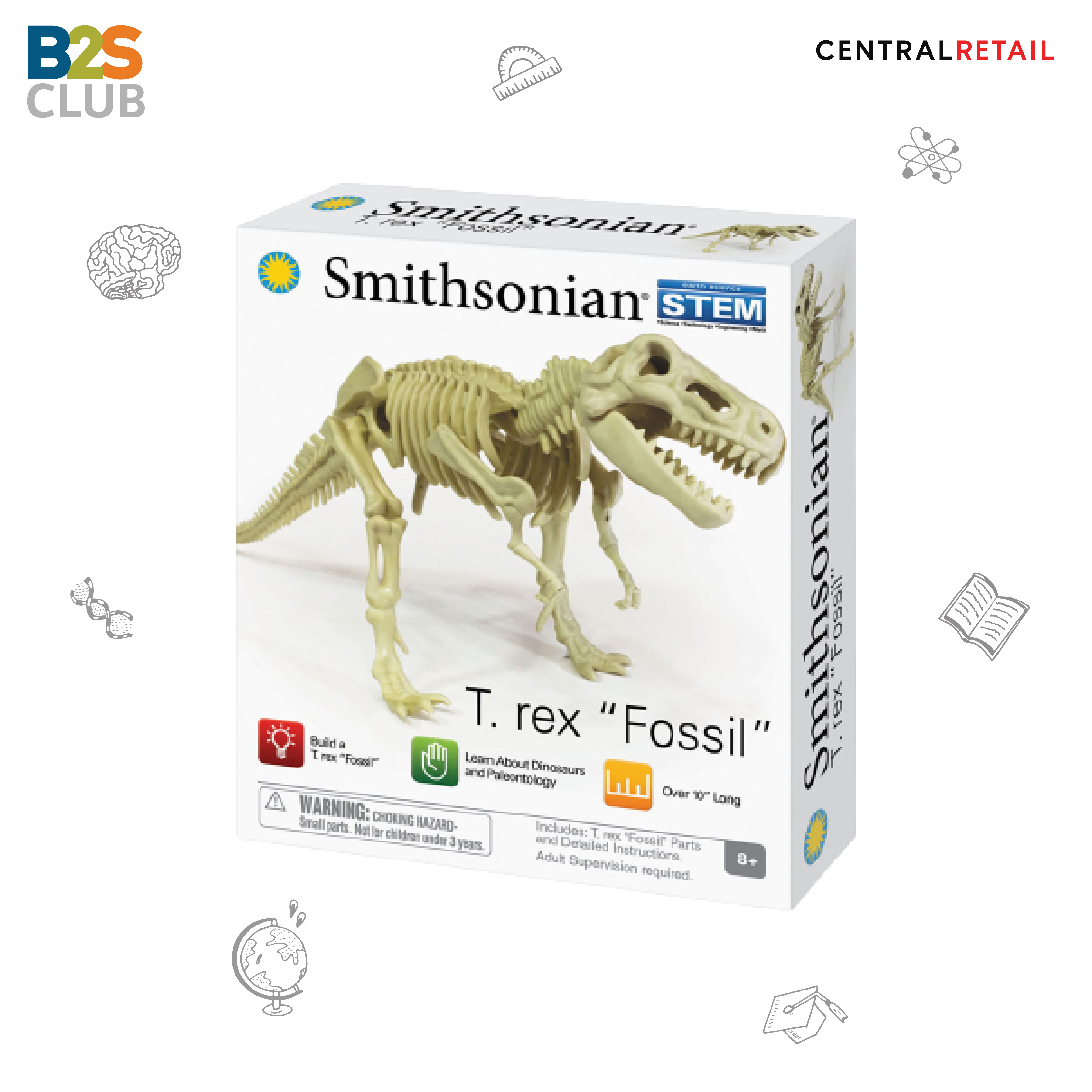 พาหนูน้อยย้อนกลับไปในยุคดึกดำบรรพ์เพื่อทำความรู้จักกับไดโนเสาร์ สัตว์สูญพันธุ์ตัวยักษ์ขวัญใจเด็ก ๆ ด้วย SMITHSONIAN MICRO DINOSAUR FOSSILS ภายในชุดประกอบด้วยชุดโครงกระดูกไดโนเสาร์ ที-เร็กซ์ พร้อมคู่มือ เหมาะสำหรับน้อง ๆ อายุ 8 ขวบขึ้นไป นอกจากเล่นสนุกแล้วยังจะได้เห็นถึงโครงสร้างสัตว์ดึกดำบรรพ์แบบไม่ต้องไปถึงพิพิธภัณฑ์เลยล่ะ