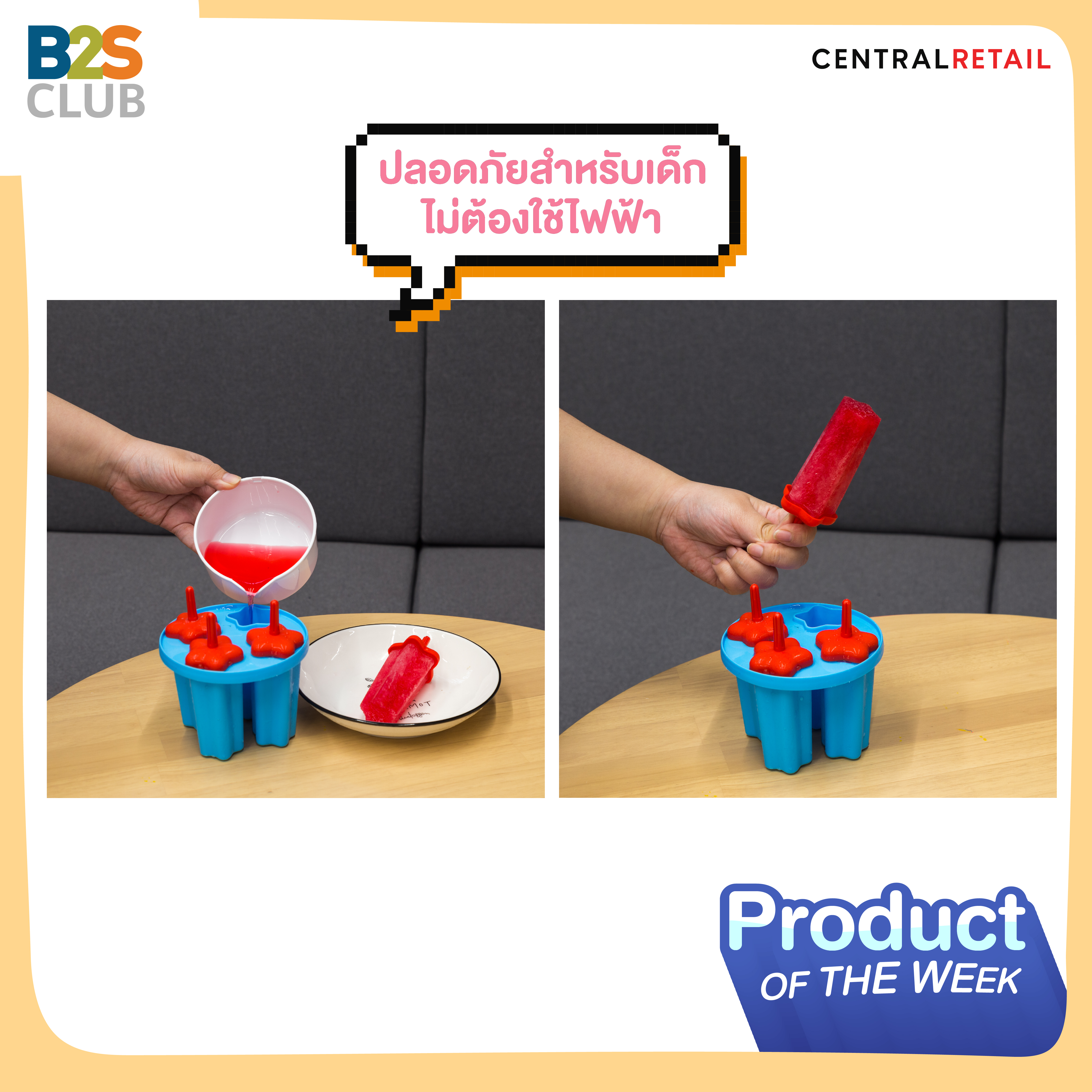 เริ่มต้นด้วยเครื่องแรก ที่ทำไอศกรีมแบบแท่ง คุณพ่อคุณแม่สามารถเตรียมน้ำหวาน ไม่ว่าจะเป็นน้ำแดงเฮลบลูบอย น้ำอัดลม น้ำสมุนไพรสีสวย ๆ หรือน้ำผลไม้ที่อยากให้ลูกลองทาน มาให้น้อง ๆ ทำ เพียงเทใส่ลงไป นำตัวมือจีบสีแดงมากดลงไปในพิมพ์ และนำเข้าช่องฟรีซ 30-60 นาที ก็สามารถรับประทานได้เลย อาจจะเพิ่มผลไม้หั่นเต๋า หรือเยลลี่ ลงไปเพื่อเพิ่มความสนุกได้ค่ะ