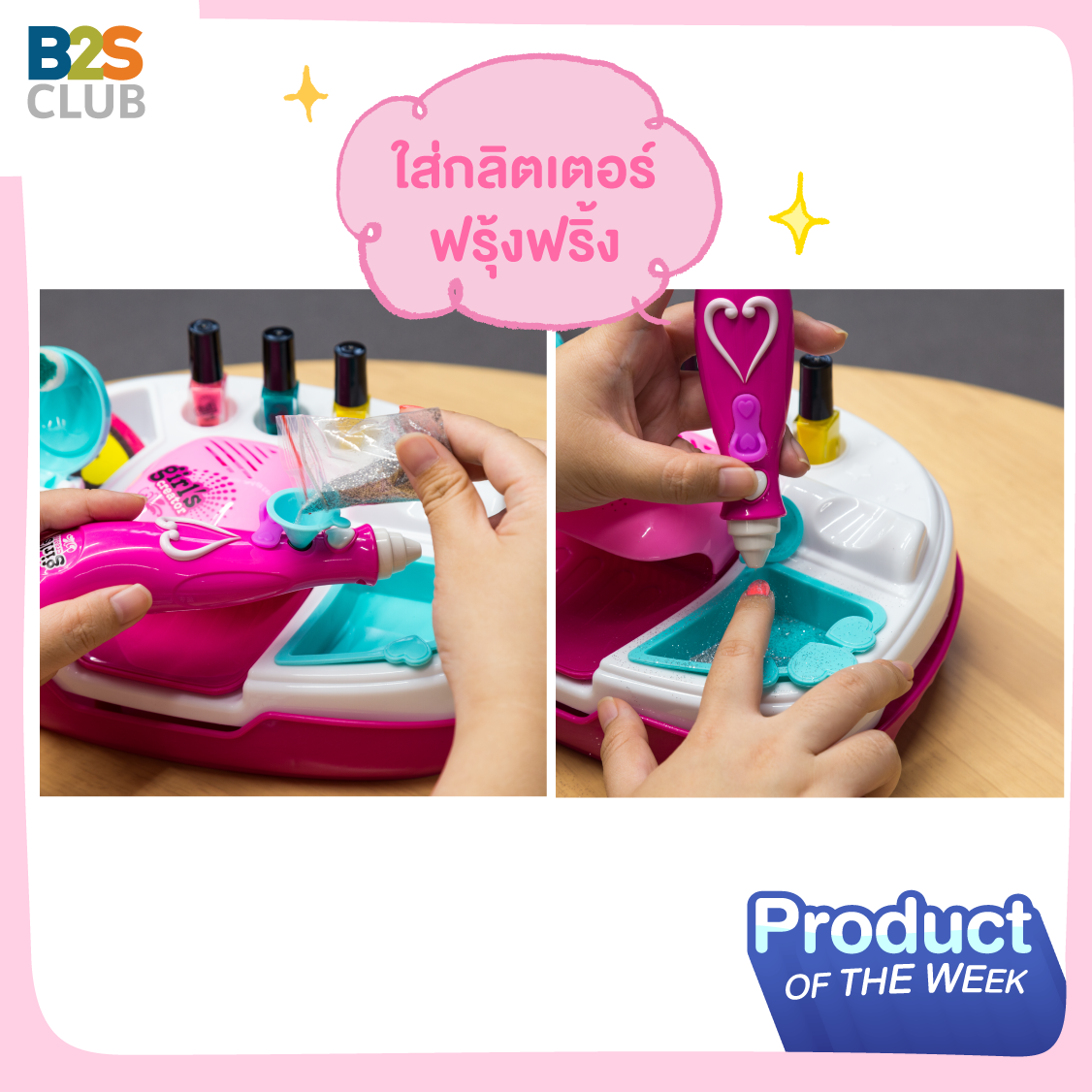 Why: ของเล่นเดี๋ยวนี้พัฒนาไปไกล การตกแต่งทำเล็บเป็นกิจกรรมที่เด็ก ๆ ชื่นชอบไม่น้อยเลย อาจเพราะเห็นผู้ใหญ่ที่บ้านทำเล็บสีสันต่าง ๆ ทำให้สนใจและเปรียบเทียบกับตัวเองว่าทำไมเล็บของพวกหนูไม่มีลวดลายบ้าง เป็นชุดทำเล็บที่มีอุปกรณ์ครบถ้วน มีสีให้ทาหลากหลาย ประดับตกแต่งได้ด้วยสติ๊กเกอร์ลายต่าง ๆ พร้อมกลิตเตอร์วิบวับ ถูกใจหนูๆ แน่นอน ยาทาเล็บปลอดสารพิษ สามารถลอกออกได้ มาพร้อมเครื่องเป่าเล็บ