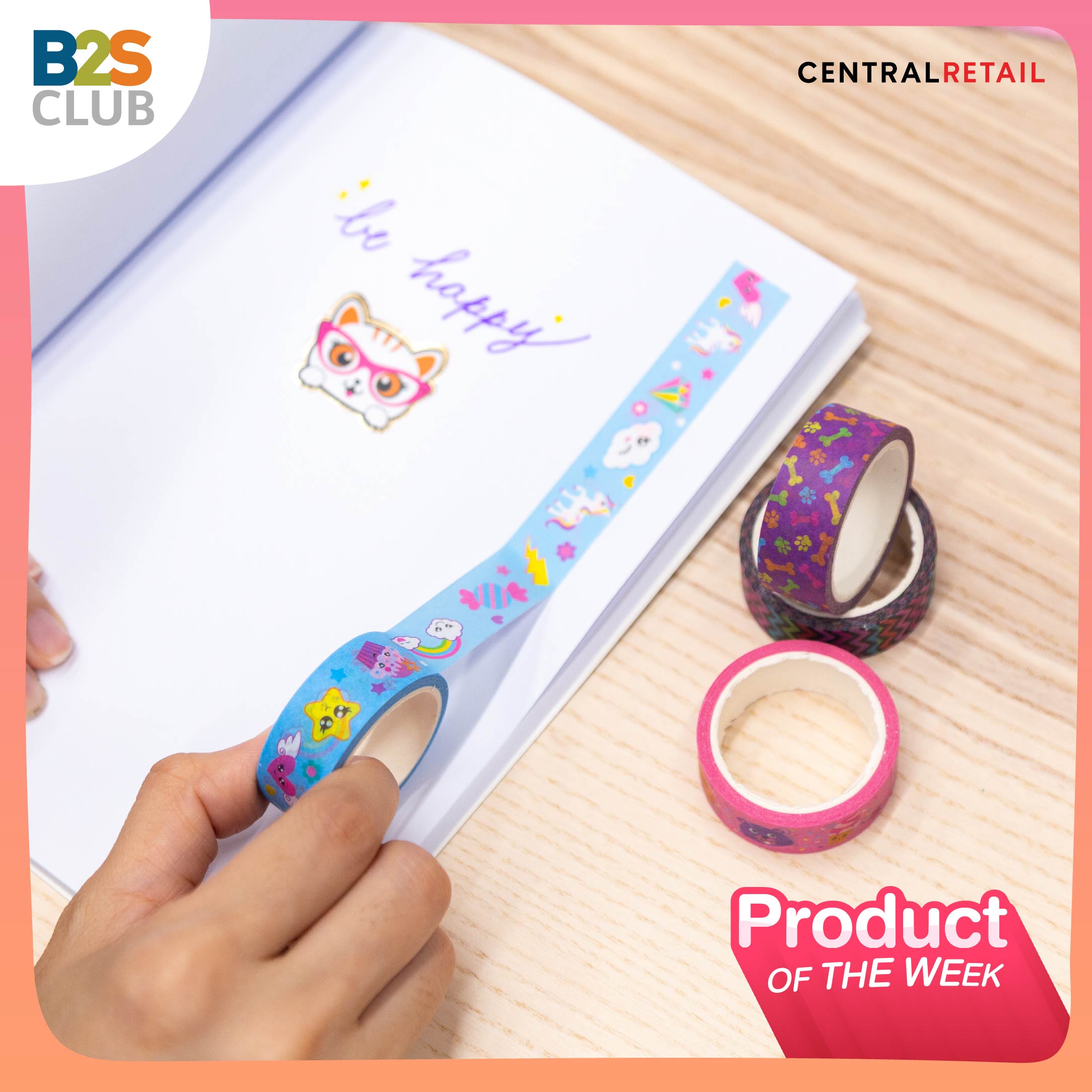 แปะ masking tape เทปตกแต่ง ที่มีลวดลายและสีสันต่างกันถึง 4 แบบ