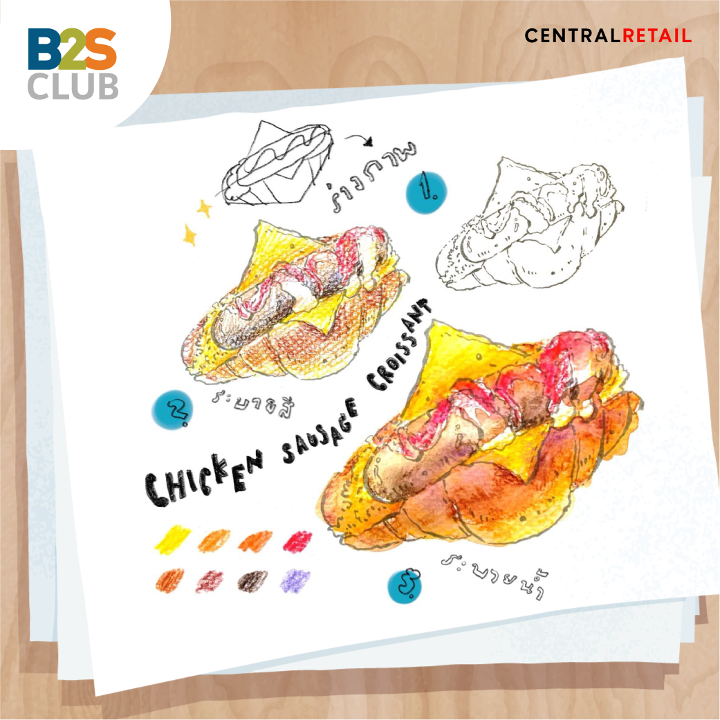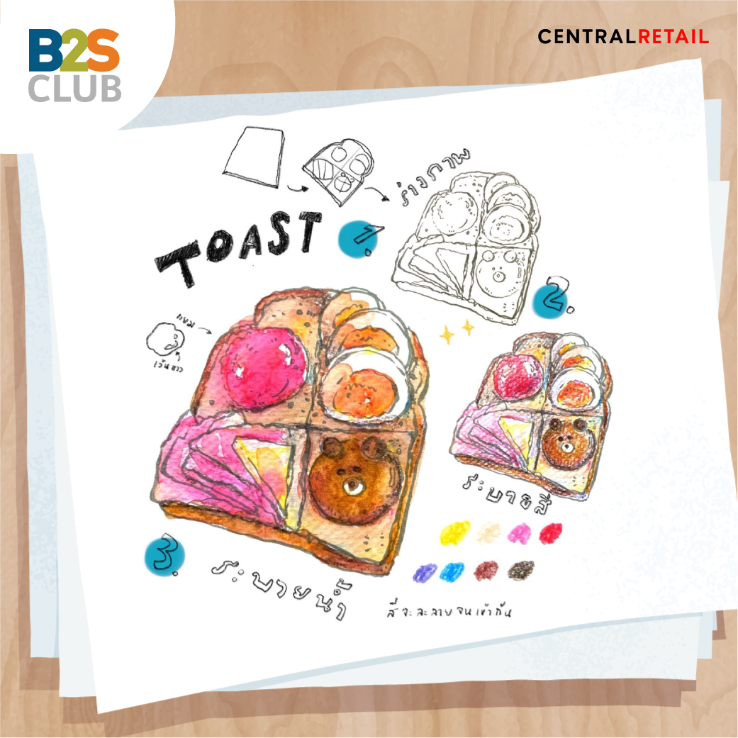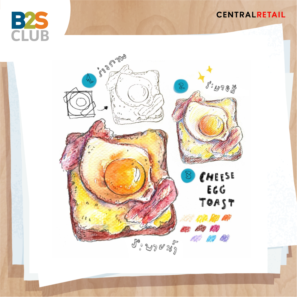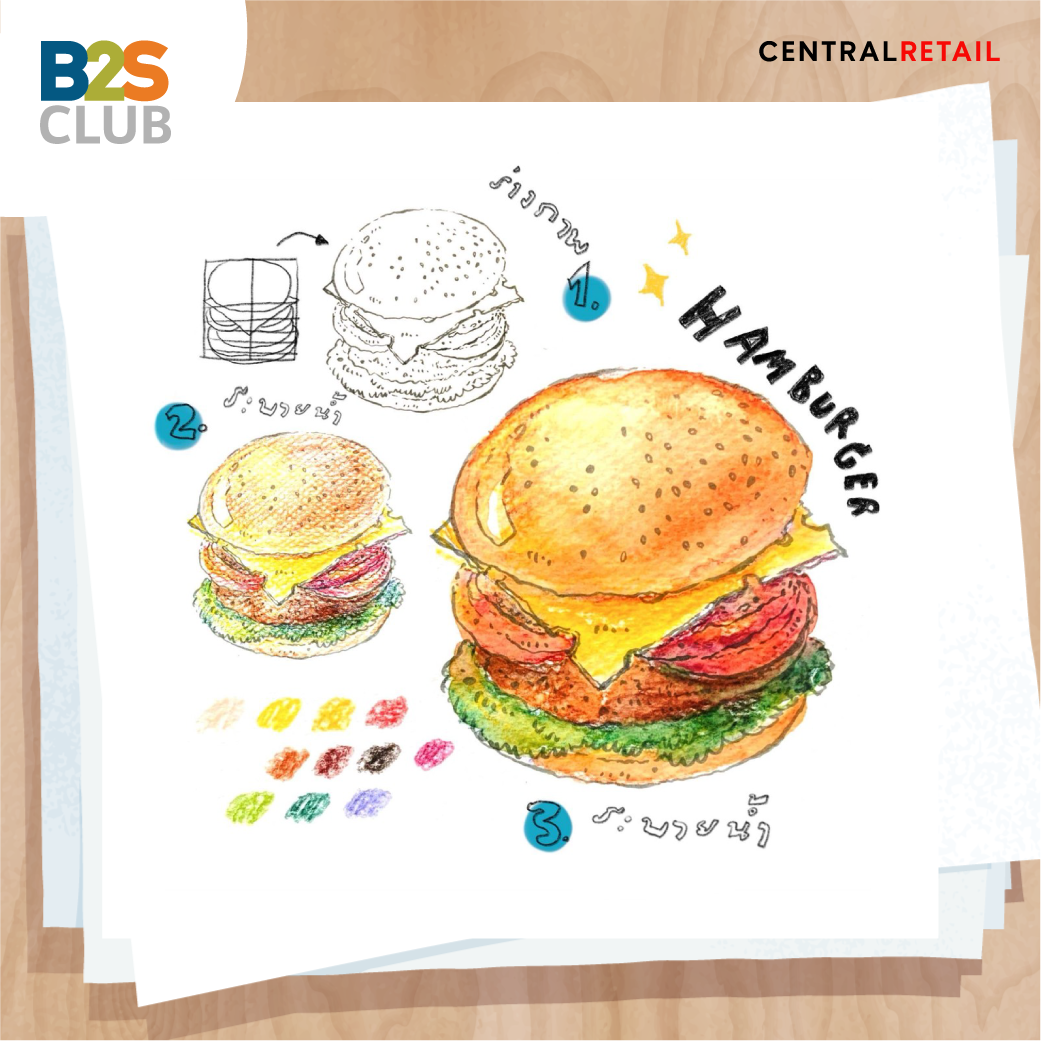 วันนี้ B2S CLUB ขอชวนทุกคนมาฝึกวาดอาหารและขนมง่าย ๆ ด้วยเทคนิคสีไม้ระบายน้ำ ที่จะทำให้อาหารของเราดูน่าทานขึ้น อุปกรณ์ที่ใช้ไม่ยุ่งยากเลย แค่มีสีไม้ระบายน้ำ ซึ่งคุณสมบัติของสีไม้ระบายน้ำที่ดี คือเมื่อระบายน้ำแล้วสียังคงสด ชัด ระบายง่าย ไม่ทิ้งคราบ