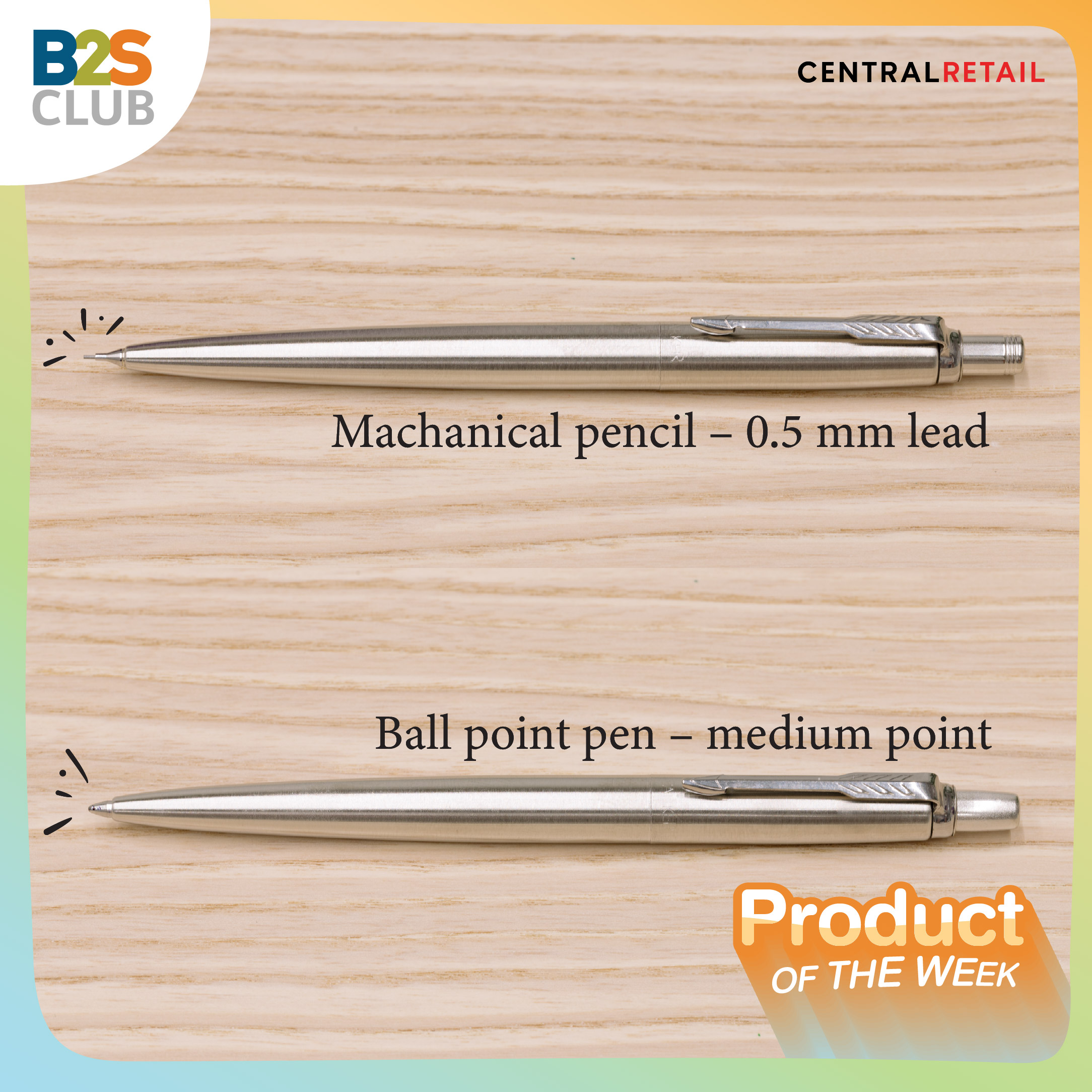 What: ชุด Parker Jotter Duo Gift Set ประกอบด้วย ปากกาลูกลื่น ขนาดกลาง และดินสอกดสีเงิน รุ่นจอตเตอร์ ขนาดหัว 0.5 mm พร้อมกล่อง