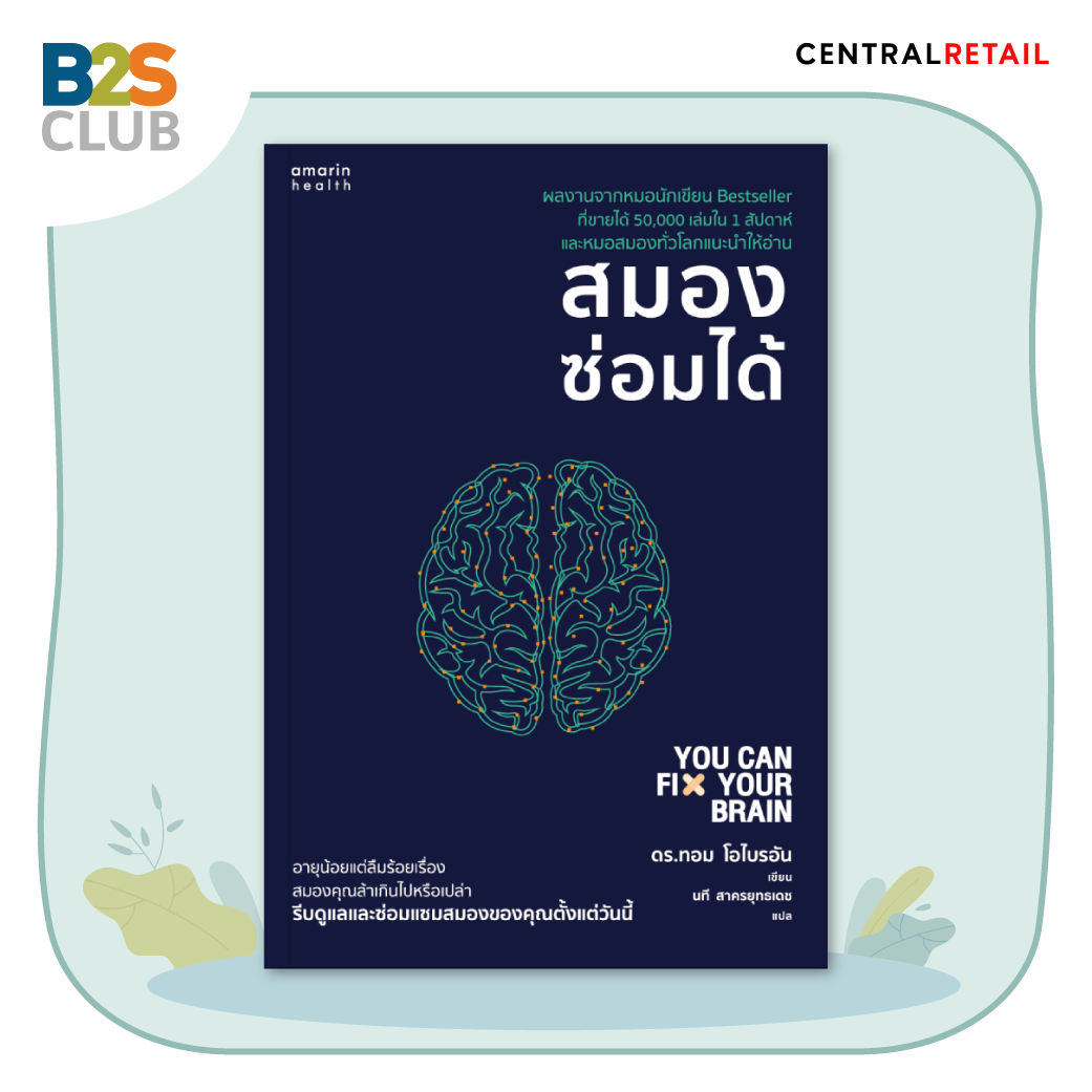 ‘สมองซ่อมได้’ เป็นหนังสือจาก คุณหมอทอม  โอไบรอัน บอกเล่าถึงสาเหตุและองค์ประกอบของสมอง รวมทั้งอาการที่เป็นสัญญาณบ่งบอกสุขภาพสมอง เช่น สมองเบลอ จำไม่ได้ หงุดหงิดง่าย นอนหลับตอนกลางคืนได้ไม่ดี รู้สึกเหนื่อยตลอดทั้งวัน นั่นเป็นสัญญาณเริ่มต้นของภาวะสมองเสื่อม พร้อมแนะนำวิธีการในการดูแลสมองที่ทำได้ง่าย ๆ อาทิ การออกกำลังกายด้วยการฝึกลมหายใจ การกินอาหารเป็นยา และแนะนำเมนูอาหารบำรุงสมองที่ทำเองได้ที่บ้าน ไปจนถึงพฤติกรรมการใช้ชีวิตที่อาจส่งผลเสียต่อสมองอย่างคุณอาจไม่คาดคิด เช่น ถ้าอยากสมองใสขอให้เลี่ยงน้ำตาล นมวัวสร้างปัญหาให้สมองได้มากมาย ข้าวสาลีและกลูเตนเป็นตัวการโจมตีสมอง สุขภาพลำไส้ดีก็ช่วยให้สมองคิดแจ่มแจ้งได้ ฯลฯ