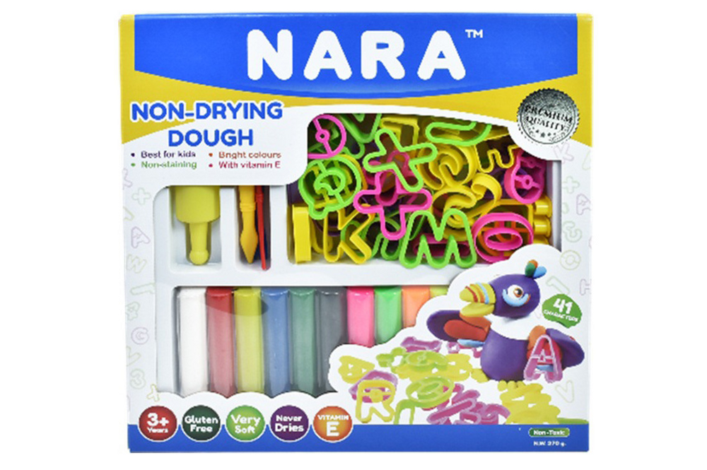 ให้ลูกทำกิจกรรมที่ได้เรียนรู้ผ่านประสาทสัมผัส เช่น เล่นแป้งโดว์ NARA แป้งโดว์ชนิดพิเศษไม่แห้ง 12 สี พร้อม MOLD ABC บรรจุในกล่องฺ