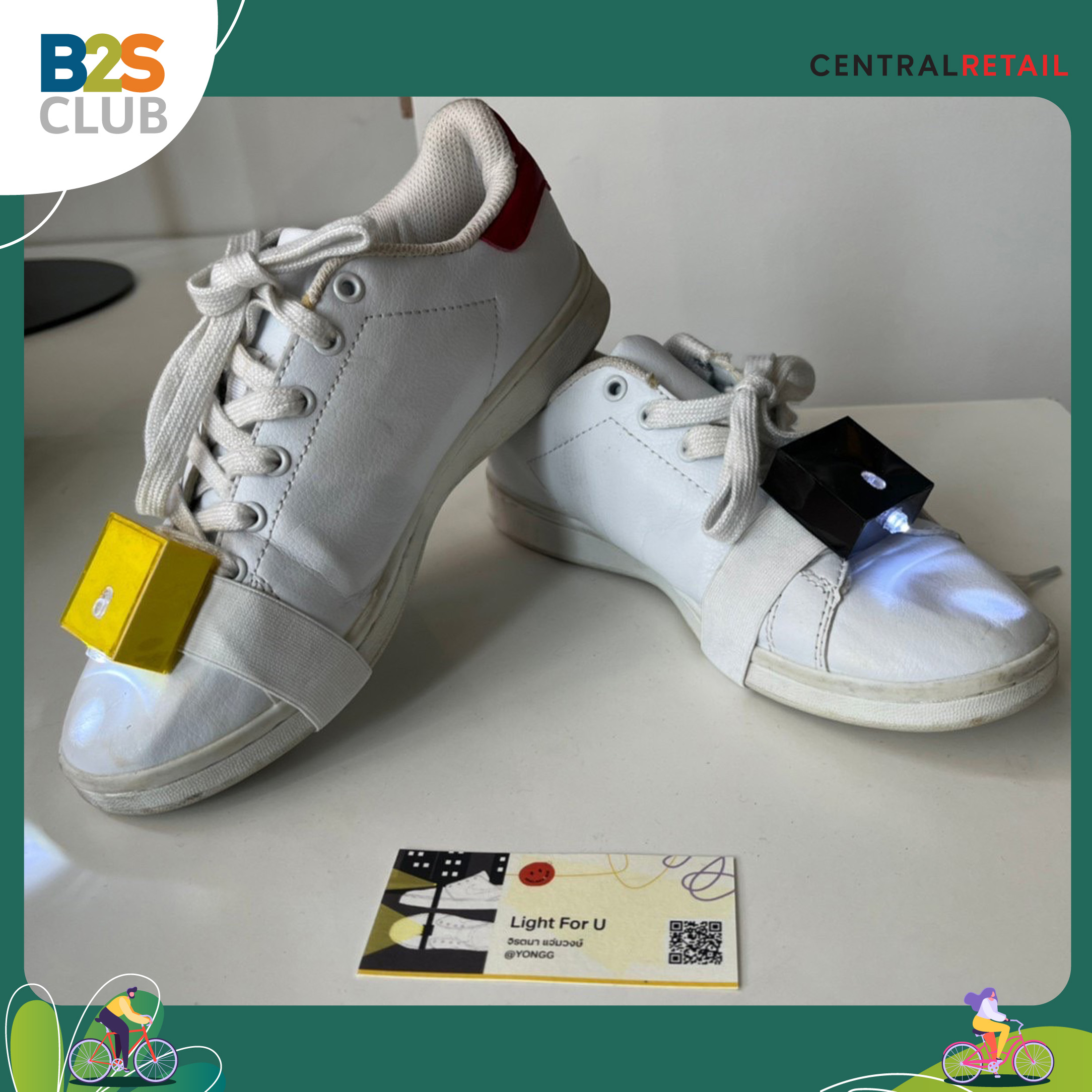 ส่วนสิ่งประดิษฐ์ชิ้นนี้คือ “Light for U” ที่น่าจะถูกใจใครหลายคนที่ต้องเดินกลับบ้านดึก ๆ แต่แสงสว่างข้างทางนั้นริบหรี่เหลือเกิน มาเพิ่มแสงสว่างส่องทางในยามค่ำคืนด้วยอุปกรณ์เสริมติดรองเท้า คอยเป็นเพื่อนร่วมทางจนถึงบ้านอย่างปลอดภัย
