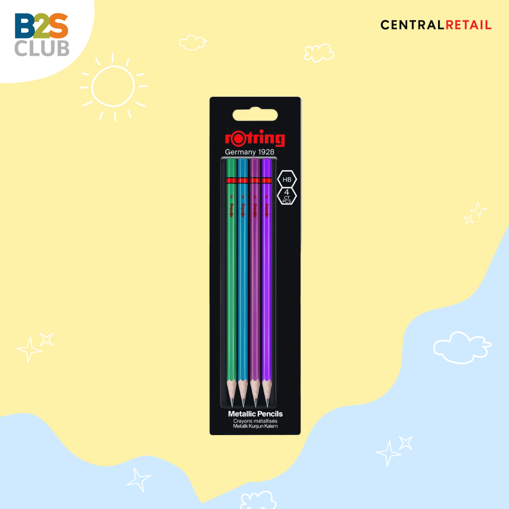วัยเรียนอย่างหนูๆ ต้องมีดินสอดีๆ ให้ได้ฝึกฝนทักษะการเขียนที่โรงเรียนนะ ขอแนะนำ ดินสอไม้ HB Roting Metallic โดยเด่นด้วยความเข้มของไส้ดินสอแบบ HB เขียนคมชัด ต่อเนื่อง ไม่ต้องออกแรงกดเยอะ แถมเหลาง่าย ไส้ไม่หัก พิเศษ! ซื้อเป็นแพ็ค่ 4 แท่งคุ้มสุดๆ มีทั้งสีม่วง ฟ้า แดง และเขียวให้เลือกเลย~