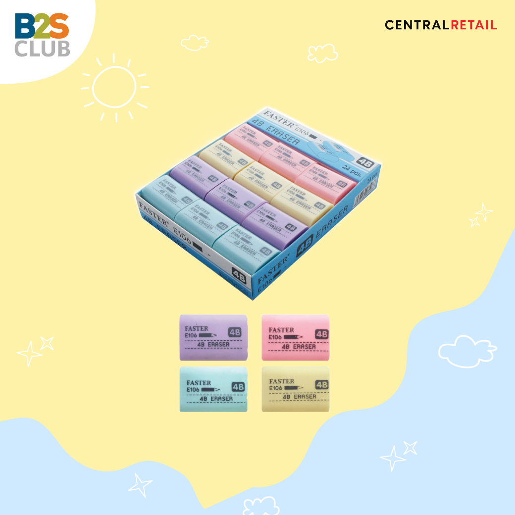 มีดินสอแล้วจะขาดยางลบได้ไง เด็กวัยหัดเขียนย่อมเขียนผิด ลบบ่อยเป็นธรรมดา การที่ลูกมียางลบคุณภาพดี ลบสะอาด กระดาษไม่ขาด ช่วยให้การฝึกฝนการเขียนได้สะดวกขึ้น ของมันต้องมี! ยางลบดินสอ 4B คละสี จาก Faster สีพาสเทลสุดน่ารัก น่าใช้ ก้อนใหญ่ จับถนัดมือ แถมเนื้อยางลบนุ่มนิ่มมาก ลบง่าย สบายมือ รับรองว่าเขียนผิดบ่อยแค่ไหน ก็ไม่เบื่อแน่นอน