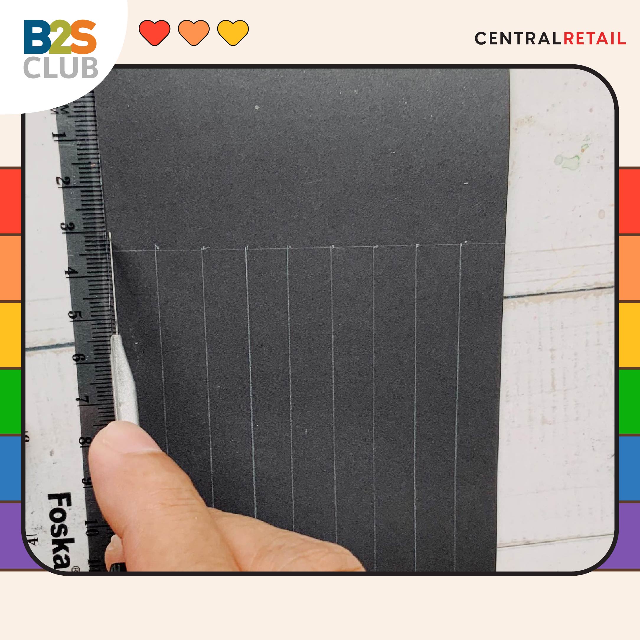 4. เตรียมกระดาษสีดำแยกอีกแผ่น ใช้คัตเตอร์กรีดเป็นช่อง 15ช่อง