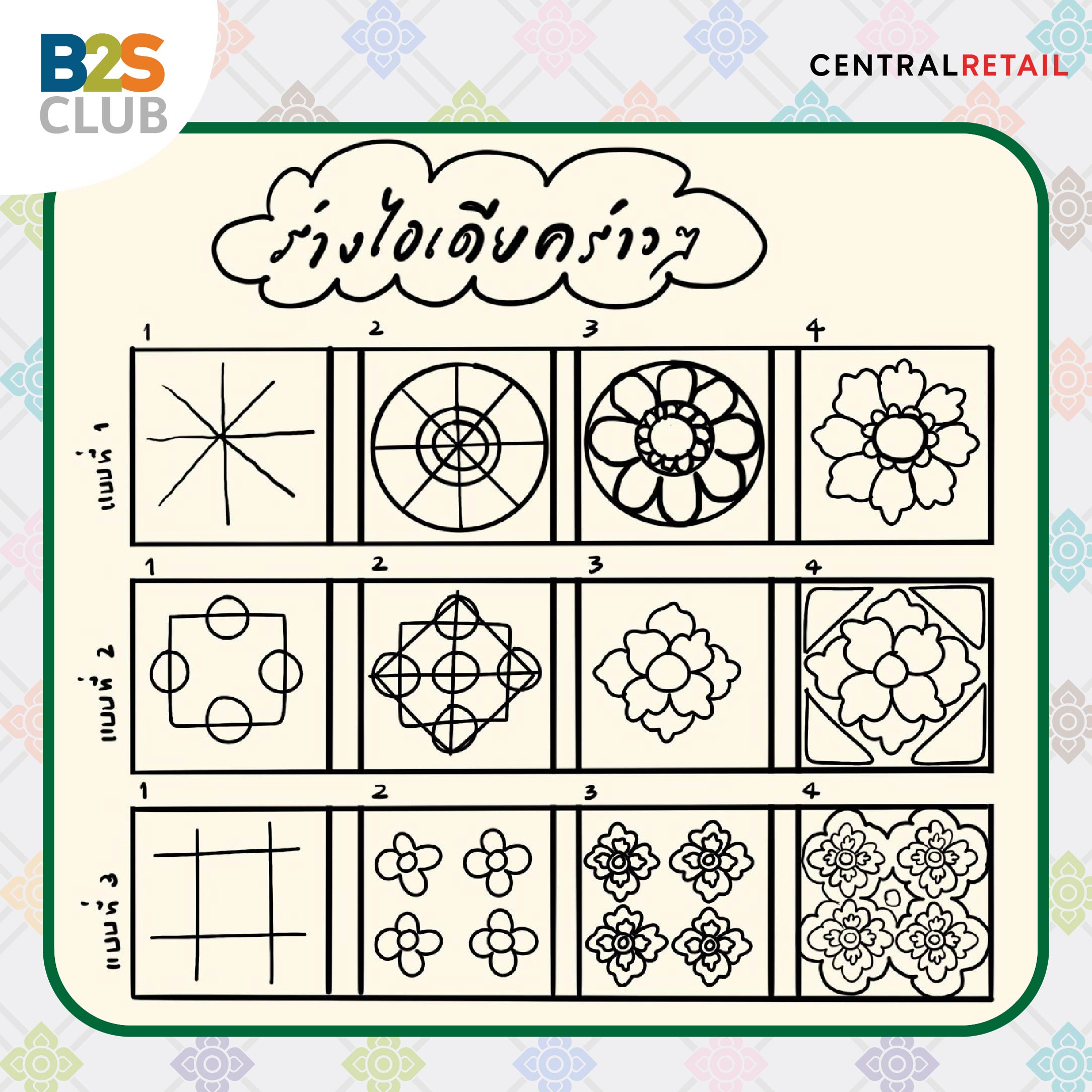 ให้เพื่อนๆ ฝึกวาด หรือนำไปต่อยอดวาดเป็นลวดลายอื่นๆได้อีกด้วย ลองวาดกันดูนะ