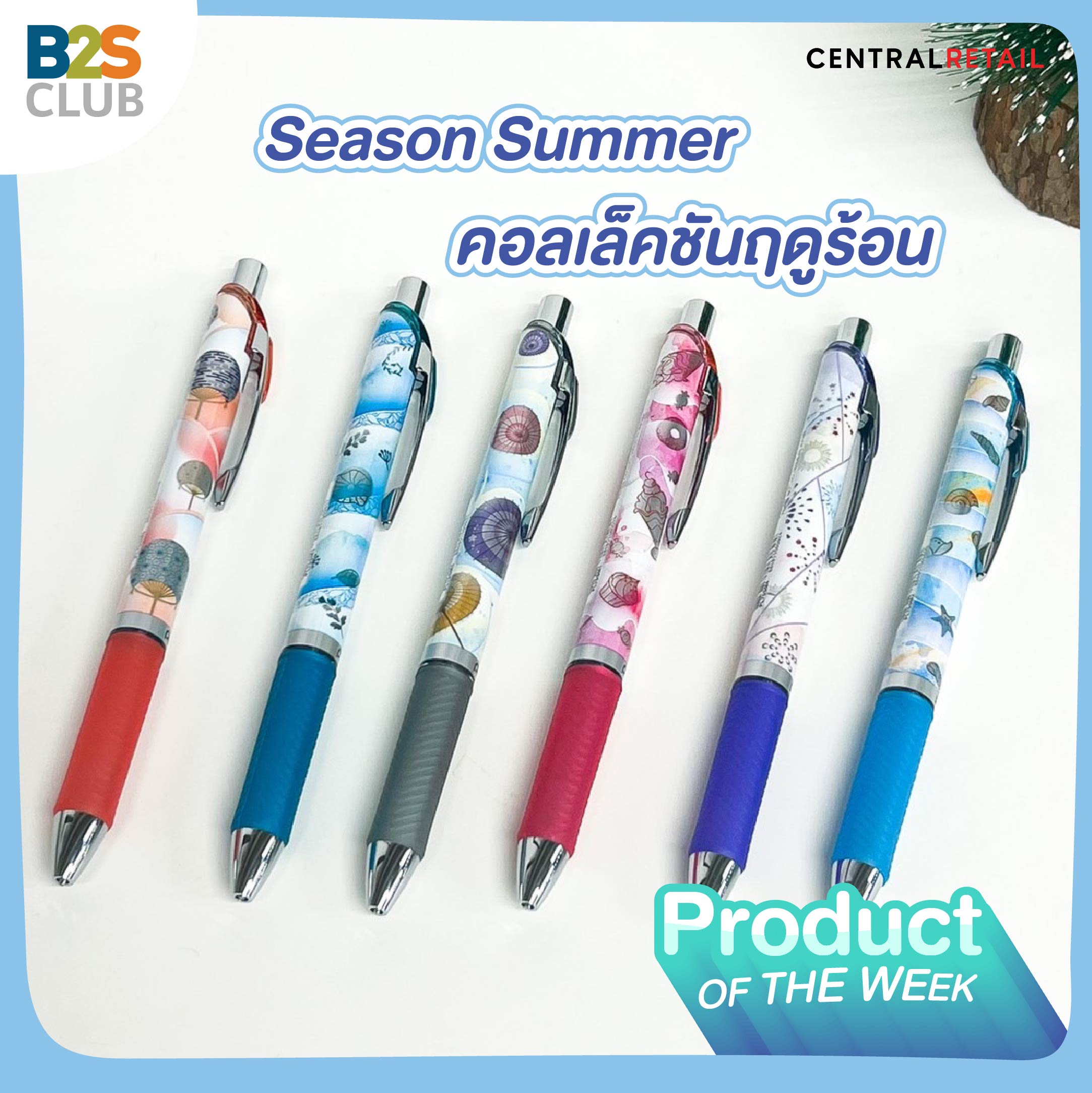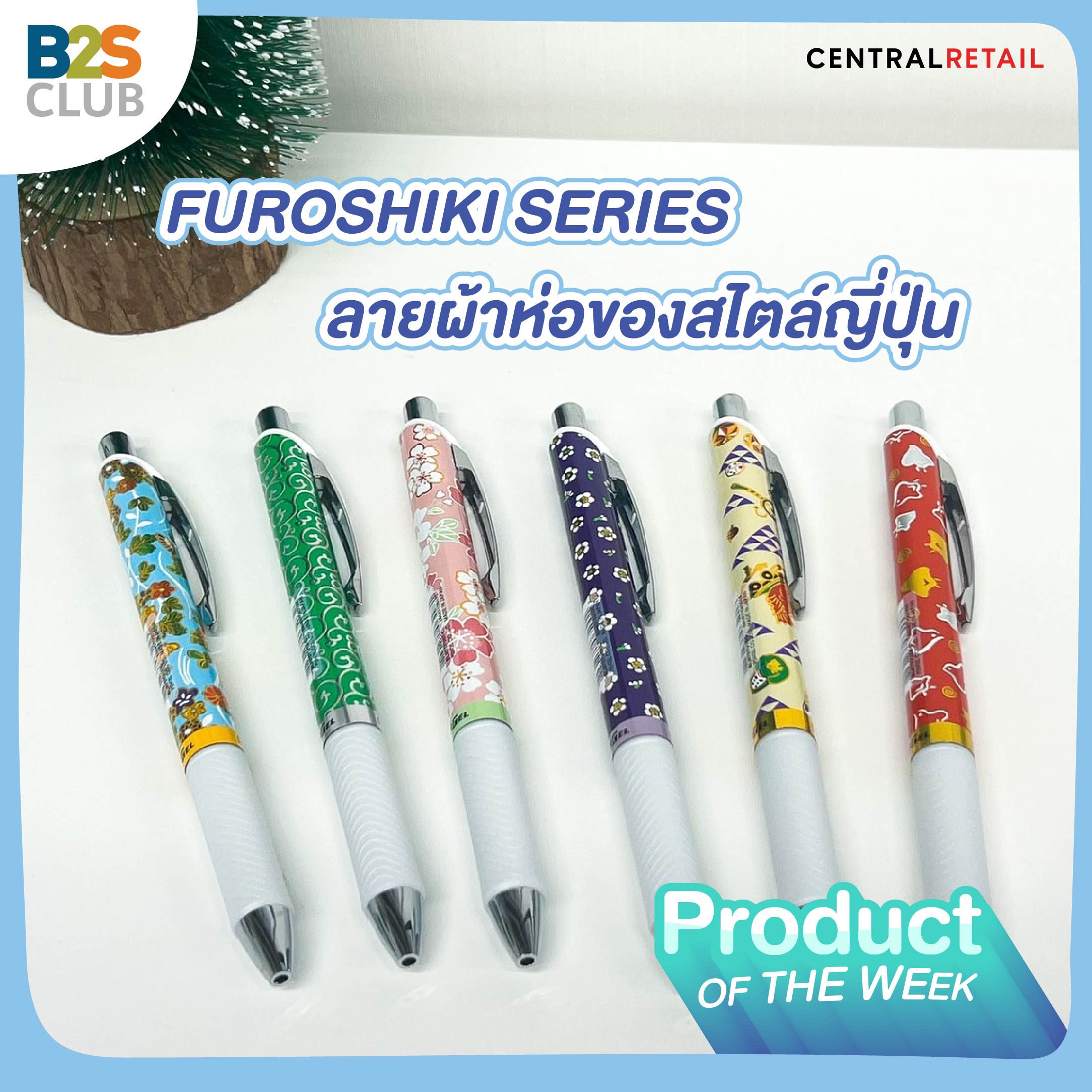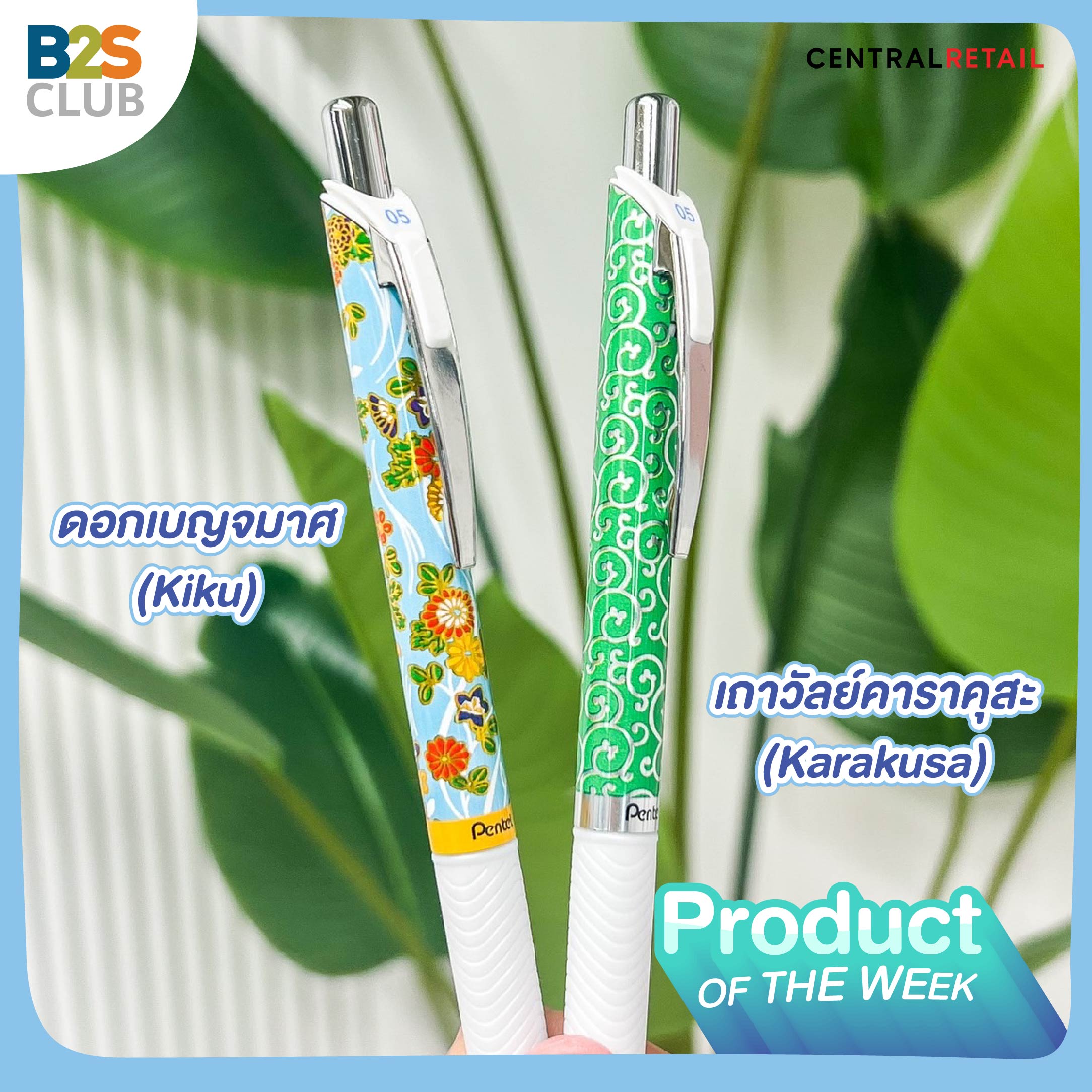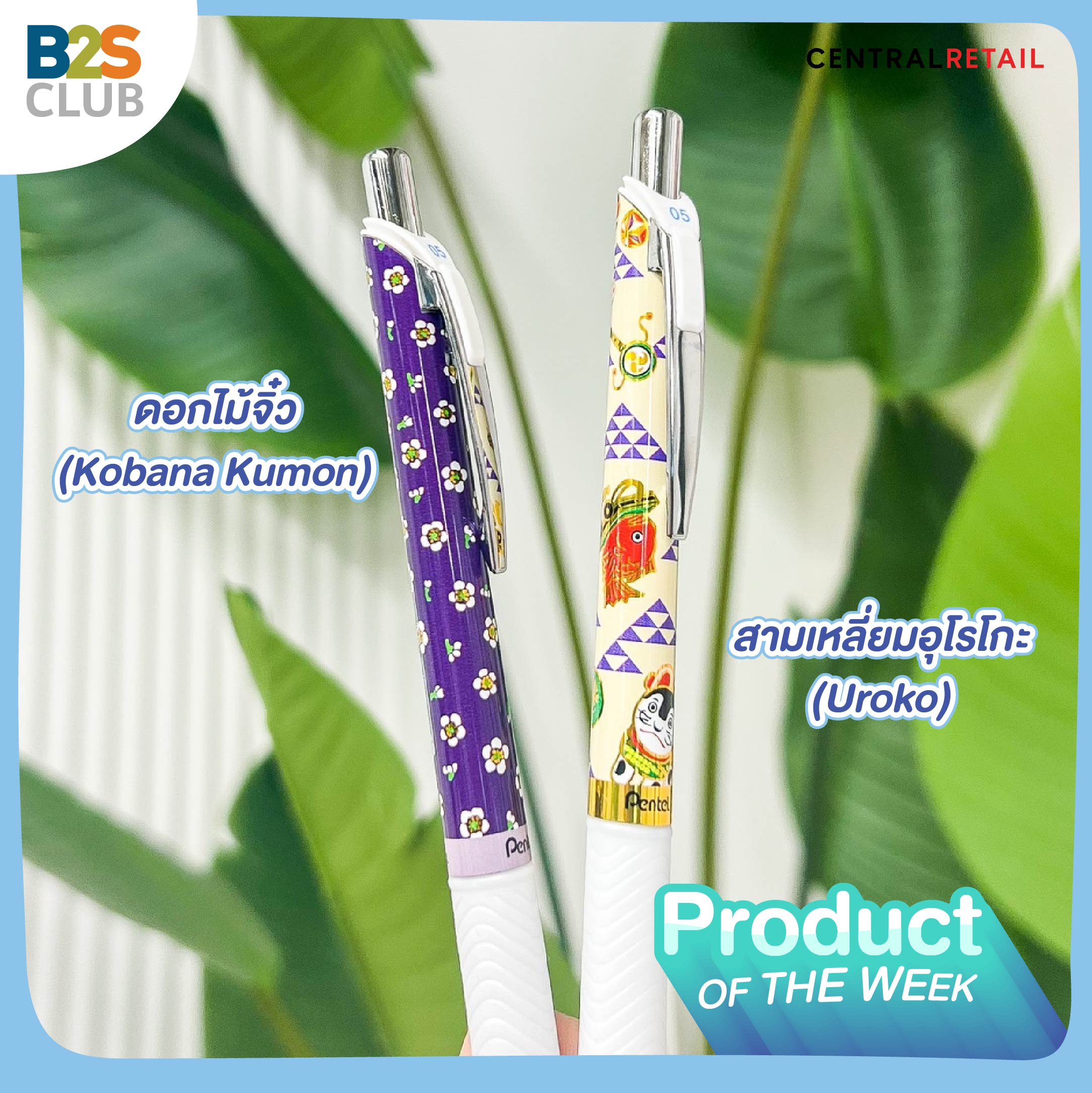 What: ปากกาหมึกเจลสีน้ำเงิน Pentel Energel หัวเล็ก 0.5 มม. ราคาแท่งละ 65 บาท มีทั้งหมด 12 ลาย 2 คอลเล็คชัน ได้แก่ Summer Season และ Furoshiki Series