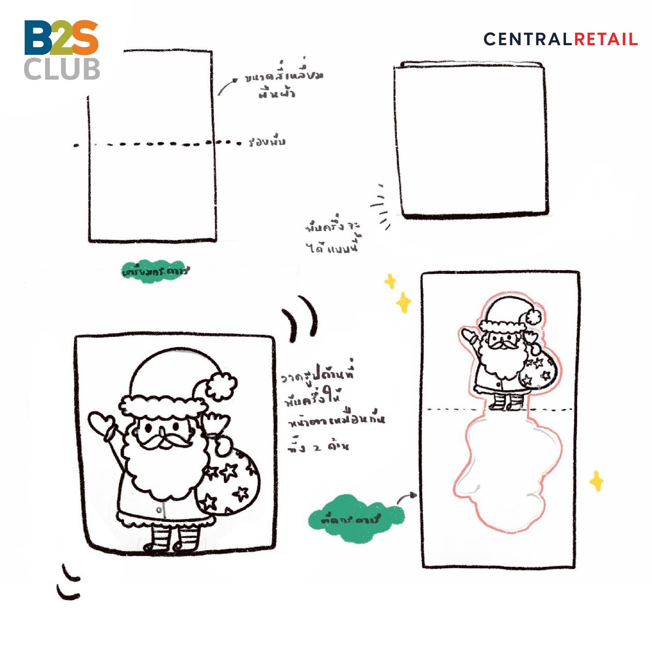 จากนั้น พับครึ่งกระดาษให้เกิดรอย วาดรูปที่ต้องการในทั้ง 2 ด้านที่พับ