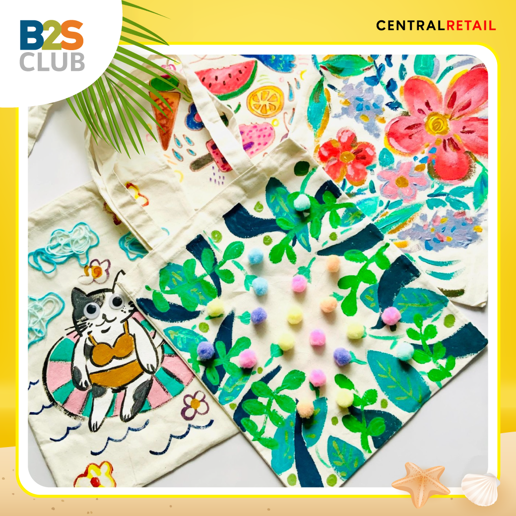 ความสนุกใกล้จะเริ่มเข้ามาแบบนี้ B2S ชักจะตื่นเต้นด้วยแล้วล่ะ ไหนๆ ก็ไหนๆ มาจัดเต็มกันให้สุด ต้อนรับหน้าร้อนสุดซ่า ด้วยไอเดียตกแต่งกระเป๋าผ้า จากแบบธรรมดาให้สวยฉ่ำกัน! เสื้อผ้าพร้อม หน้าพร้อม ทริปพร้อม อย่าลืมพร็อพเริ่ดๆ อย่างกระเป๋าชิคๆ ล่ะ