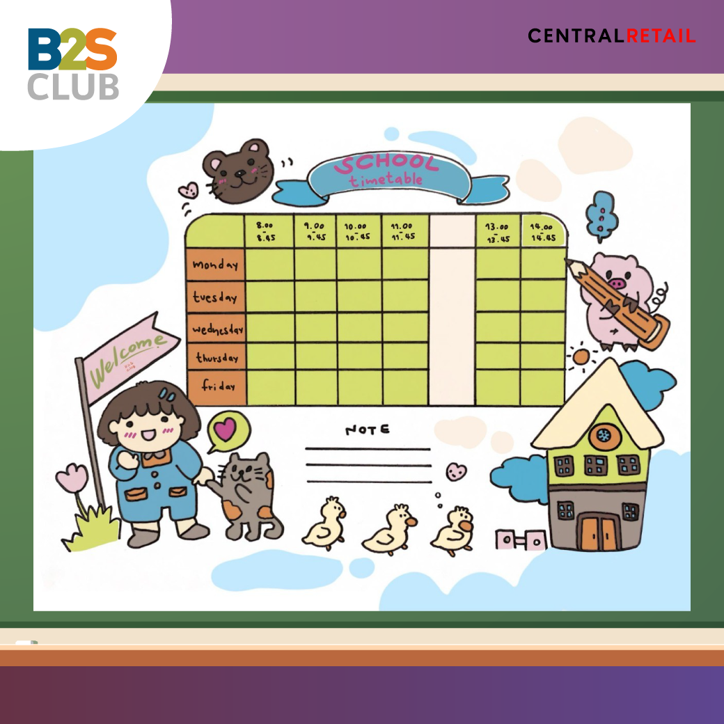 วันนี้ B2S CLUB จะมาแจกไอเทมน่ารัก ๆ ที่จะทำให้น้อง ๆ หนู ๆ อยากลุกขึ้นมาจัดตารางเรียนด้วยตัวเอง ซึ่งนั่นก็คือออ..เทมเพลตตารางเรียนงาน Hand Made สุดคิ้วท์ วาดเอง ดีไซน์เองกับมือ ปริ้นท์ไปติดโต๊ะทำการบ้าน เสริมสร้างกำลังใจได้เลยน้า