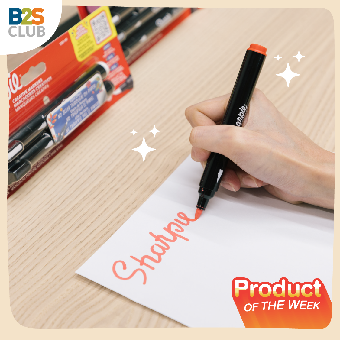 What: Sharpie Creative Marker มาร์คเกอร์ที่เขียนได้ทุกพื้นผิว และไม่ซึมทะลุกระดาษ มีทั้งหมด 12 เฉดสี แถมเลือกหัวปากกาได้ 2 แบบ ทั้งหัว Bullet และหัว Brush tip เลือกซื้อเป็นเจ้าของได้แล้วที่ B2S ทุกสาขา