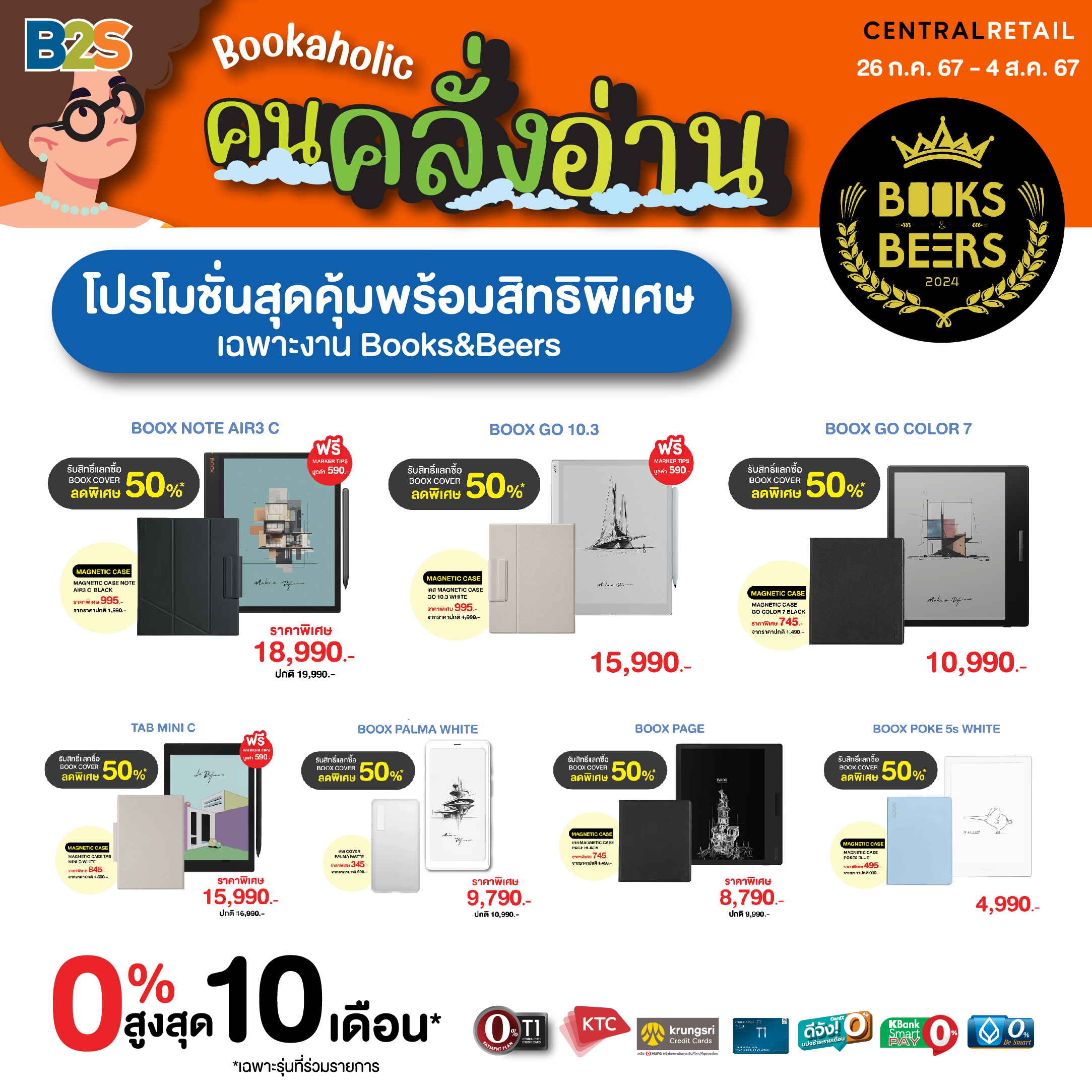 โปรโมชั่นพิเศษหนังสือทุกเล่มลดสูงสุด 20% และสินค้า E-Leader ราคาโดนใจพร้อมแลกซื้อ Case รับส่วนลดสูงสุด 50% ที่บูธ B2S ในงาน Book&Beer 2024 ตึกสิงห์คอมเพล็ก ชั้น Gระหว่างวันที่ 26 ก.ค. – 4 ส.ค. 67