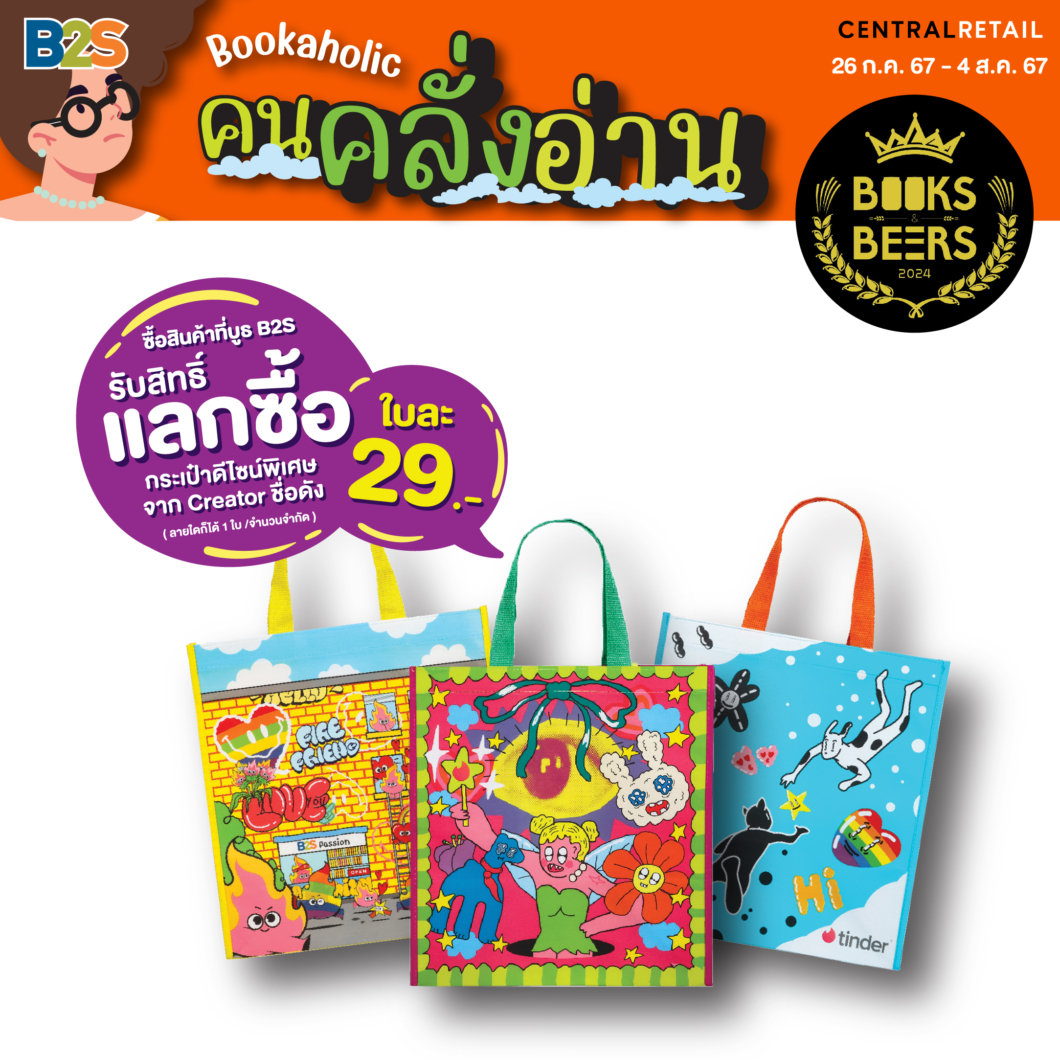 • พิเศษ เพียงซื้อสินค้าบูธบีทูเอส ในงาน Book&Beer 2024 ตั้งแต่วันที่ 26 ก.ค. – 4 ส.ค. 67 สามารถแลกซื้อกระเป๋าช้อปปิ้งดีไซน์พิเศษจาก Creator ชื่อดังได้ในราคา 29 บาท (จากปกติ 49 บาท)