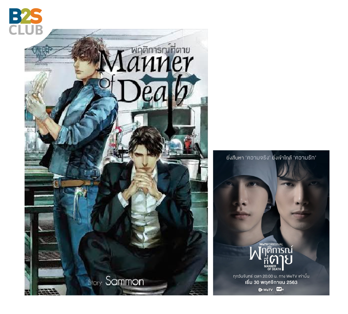 ฉีกแนวนิยายวายสายฟิน กับเรื่องราวสุดเข้มข้น พฤติการณ์ที่ตาย MANNER OF DEATH ที่นำเอา 5 ประเภทของการตาย อย่างประเภท ฆ่าตัวตาย ถูกผู้อื่นทำให้ตาย ถูกสัตว์ทำร้ายตาย อุบัติเหตุ หรือโรคธรรมชาติ ซึ่งเป็นหลักสำคัญในการสืบสวนคดีการเสียชีวิตมาผูกเรื่องราวได้น่าติดตาม ซึ่งพฤติการณ์ที่ตายเป็นเรื่องราวของ 'นายแพทย์บรรณกิจ' แพทย์นิติเวชประจำโรงพยาบาลจังหวัด ได้ออกชันสูตรศพที่สถานที่เกิดเหตุไปตามหน้าที่ แต่หลังจากที่ได้ชันสูตรศพหญิงสาวแขวนคอตายรายหนึ่ง ชีวิตของเขาก็เปลี่ยนไป และสิ่งที่บรรณกิจต้องทำ คือฟังในสิ่งที่ "ศพ" กำลังพูด ในขณะที่เนื้อเรื่องกำลังดำเนินไปอย่างเข้มข้นก็มีจังหวะฟินๆ หวานๆ ให้ได้จิ้นช่วยลดระดับความเครียดของเนื้อเรื่องได้มากขึ้น นอกจากซีรีส์ทางการแพทย์ที่ทำออกมาได้อย่างยอดเยี่ยมแล้ว แน่นอนว่ารายละเอียดต่าง ๆ ที่ปรากฎในซีรีส์เรื่องนี้ได้ถ่ายทอดออกมาจากนิยายได้อย่างครบรส แต่หากว่าชาวคลับท่านไหนอยากได้ความเข้มข้นที่ลงรายละเอียดให้ได้จินาการภาพแบบที่สนุกจนวางไม่ลงแล้วละก็ อย่าลืมตามหานิยายเรื่องพฤติการณ์ที่ตายมาอ่านกัน ซื้อหนังสือได้ที่ Facebook B2S Thailand