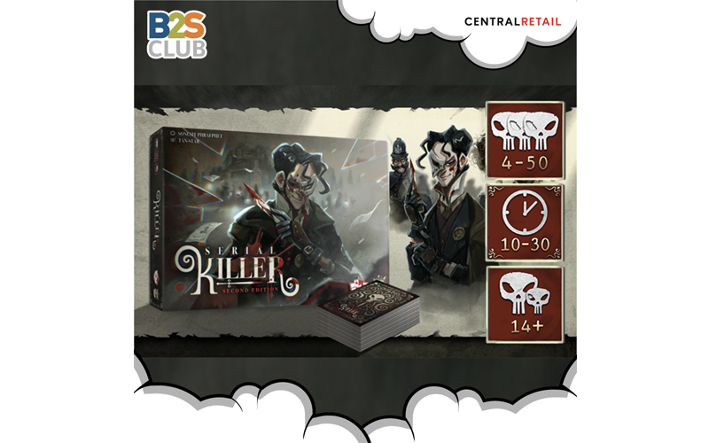 เกมที่ 4 SERIAL KILLER 2ND เหมาะสำหรับอายุ 8 ปีขึ้นไป ใช้เวลาเล่นประมาณ 30 - 45 นาที เกมสำหรับสายวางแผนกลยุทธ์ สามารถเล่นได้ 2 - 5 คน เมื่อเมืองที่เราอาศัยอยู่ ได้มีฆาตกรร้ายปะปนเข้ามา ถึงเวลาที่เราจะต้องช่วยกันตามล่าและจับเจ้าฆาตกร ก่อนที่จะก่อเหตุไปมากกว่านี้ นอกจากนี้ ยังมีนักสืบที่ต้องช่วยตำรวจจับฆาตรกร มีนักข่าวคอยเปิดโปง มีมือระเบิด รวมไปถึง ฆาตรกรต่อเนื่อง และอีกหลายตัว สั่งซื้อได้ที่ https://www.b2s.co.th/5329522.html