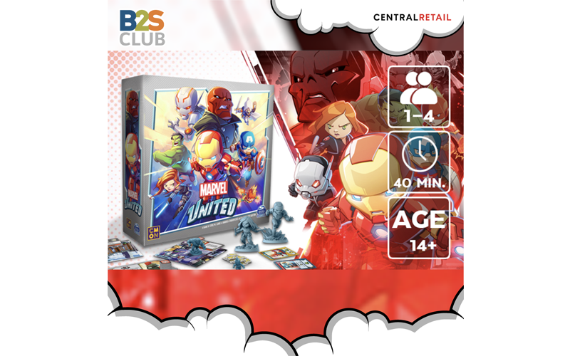 เกมสุดท้าย แฟนจักรวาล marvel ไม่ควรพลาด ชื่อว่า MARVEL UNITED เหมาะสำหรับอายุ 14 ปีขึ้นไป ใช้เวลาเล่นประมาณ 30 - 45 นาที เกมสำหรับสายวางแผนกลยุทธ์ สามารถเล่นได้ 1 – 4 คน เนื่องเรื่องเกมภัยร้ายครั้งใหม่กลับมาอีกครั้งภายใต้การนําของจอมวายร้ายที่สร้างความโกลาหล ทําร้ายผู้บริสุทธิ์ และมุ่งที่จะยึดครองโลกใบนี้ จะมีทางไหนที่จะต่อต้านจอมวายร้ายนี้ได้?ถึงแม้ว่าวายร้ายนั้นจะมีพลังอํานาจมากเพียงใด แต่พวกเราก็ยังคงมีความหวังอันยิ่งใหญ่ คือ‘เหล่าฮีโร่!’ที่เดินทางไปทั่วโลกเพื่อปกป้องผู้คน สยบภัยคุกคาม และเผชิญหน้ากับเหล่าวายร้ายนับครั้งไม่ถ้วน