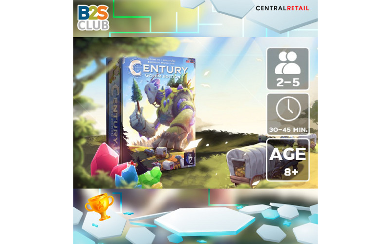 CENTURY GOLEM โกเลม สำหรับอายุ 10 ขึ้นไป ใช้เวลาเล่นแต่ละรอบ 30 - 45 นาที เล่นกับเพื่อนได้ 2 - 4 คน ตระการตากับเส้นทางค้าขาย แลกเปลี่ยนคริสตัลแห่งโกเลม คริสตัลวิญญาณแสนสวยงามชวนให้ผู้คนหลงใหล และพบกับกลไกการเล่นเกมที่ไม่เหมือนใคร สอนง่าย เข้าใจง่าย แต่สามารถทำให้วางแผนเส้นทางการทำคะแนน และตัดสินใจได้อย่างหลากหลาย เพื่อชิงชัยเป็นสุดยอดพ่อค้าคริสตัลโกเลม