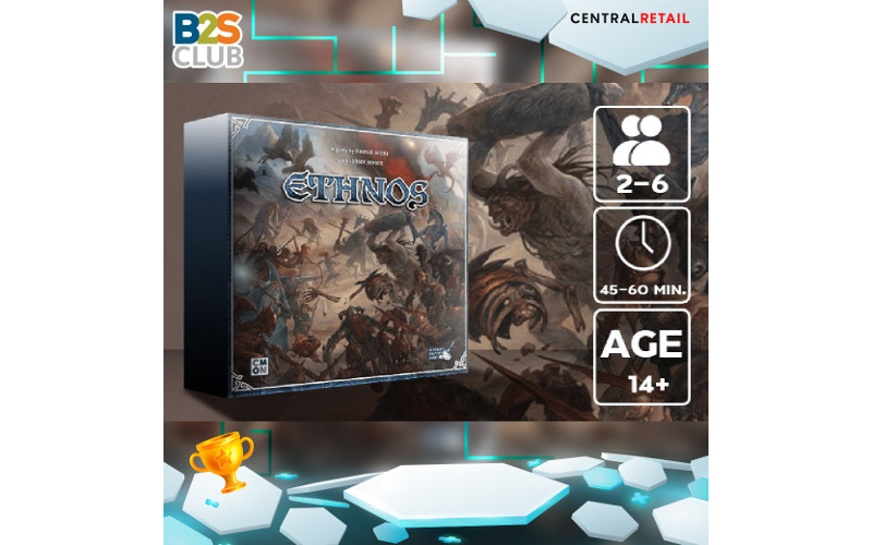 ETHNOS สำหรับอายุ 14 ขึ้นไป ใช้เวลาเล่นแต่ละรอบ 45 - 60 นาที เล่นกับเพื่อนได้ 2 - 6 คน ณ ดินแดนอันกว้างใหญ่นามว่า Ethnos ที่มีถึง 6 อาณาจักร 12 เผ่าพันธุ์ ที่ต่างใช้พละกำลัง ความสามารถและกลยุทธ์ เพื่อชิงความเป็นใหญ่ในดินแดนแห่งนี้ เกมยึดครองพื้นที่โดยใช้การ์ด สะสมเผ่าพันธุ์ต่างๆ เลือกใช้ความสามารถชิงค่าเกียรติยศจากแต่ละยุค คิดแผนการในการต่อกรกับเผ่าพันธุ์อื่น ก่อนที่มังกรร้ายจะฟื้นขึ้นมาทำลายทุกสิ่งจนหมดสิ้น