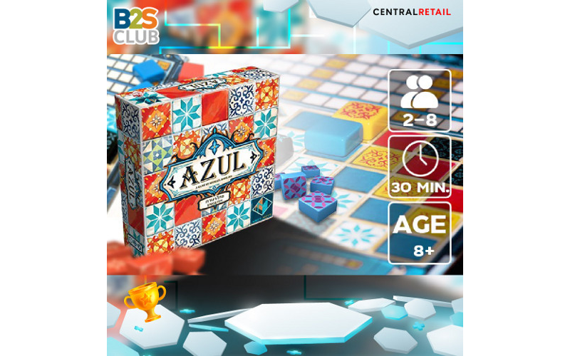 AZUL สำหรับอายุ 8 ขึ้นไป ใช้เวลาเล่นแต่ละรอบ 30 นาที เล่นกับเพื่อนได้ 2 - 8 คน เมื่อครั้งกษัตริย์มานูเอลที่1 ได้เสด็จไปยังพระราชวังอาลัมบลา ประเทศสเปน พระองค์ทรงประทับใจในความงดงามของกระเบื้องอาซูลยิ่งนัก จึงได้รับสั่งให้เหล่าช่างมาออกแบบและปูกระเบื้องในพระราชวังของพระองค์ คุณจะได้รับบทบาทเป็นศิลปินนักจัดกระเบื้อง ท้าทายจินตนาการ เดินทางไปเสาะหากระเบื้องจากโรงงานต่างๆ และนำมารังสรรค์ให้ได้ผนังสุดอลังการไปด้วยกระเบื้องอาซูล