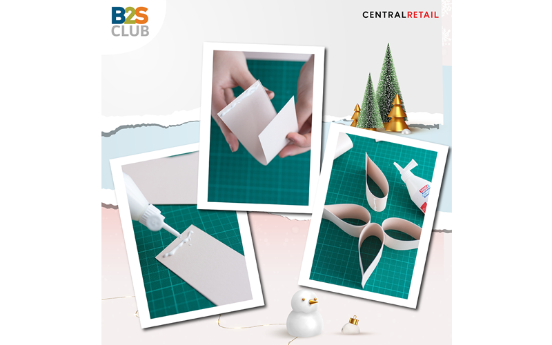 นำมาประกอบกันโดยนำ4 ชิ้นแรกมาติดกันให้เหมือนรูปเครื่องหมายบวก และนำอีก 4 ชิ้นที่เหลือมาติดแทรเข้าไประหว่างชิ้นจะได้เกล็ดหิมะแบบ 8 แฉก หรือถ้าอยากเพิ่มความอลังก็สามารถทำตัวหยดน้ำมาติดเพิ่มเลเยอร์ได้ตามใจชอบเลยค่ะ