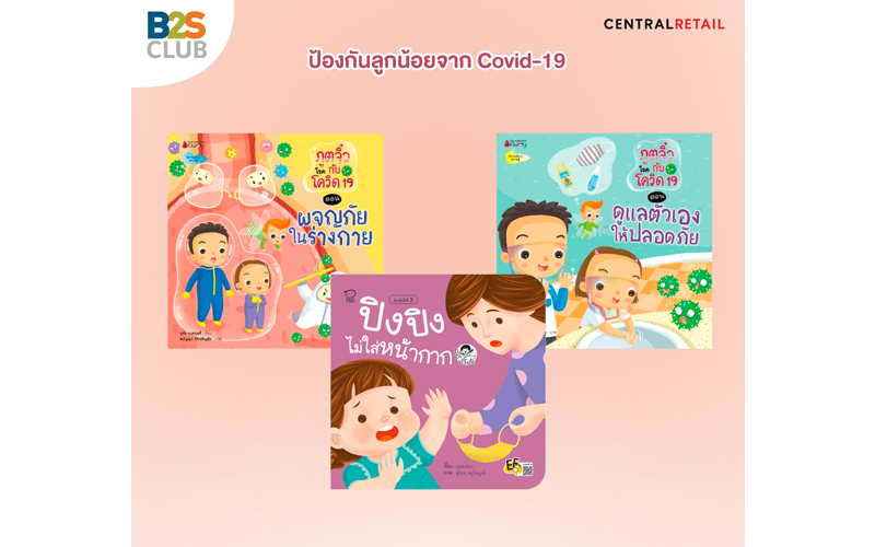 ชุดต่อมา หนังสือตัวช่วยของคุณพ่อคุณแม่ที่สอนให้ลูกเข้าใจโควิด และรู้จักป้องกันตัวเอง ล้างมือ ใส่หน้ากาก และระมัดระวังตัวเองมากขึ้นเมื่อไปโรงเรียน