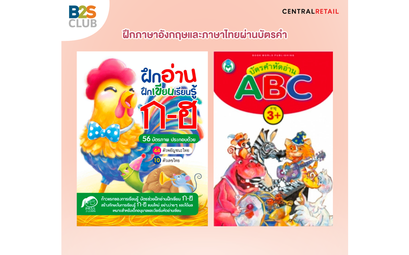 ชุดต่อมาเป็นบัตรคำ ที่พ่อแม่สามารถเล่นกับลูก พร้อมสอนก-ฮ และ A-Z ไปด้วยในตัว