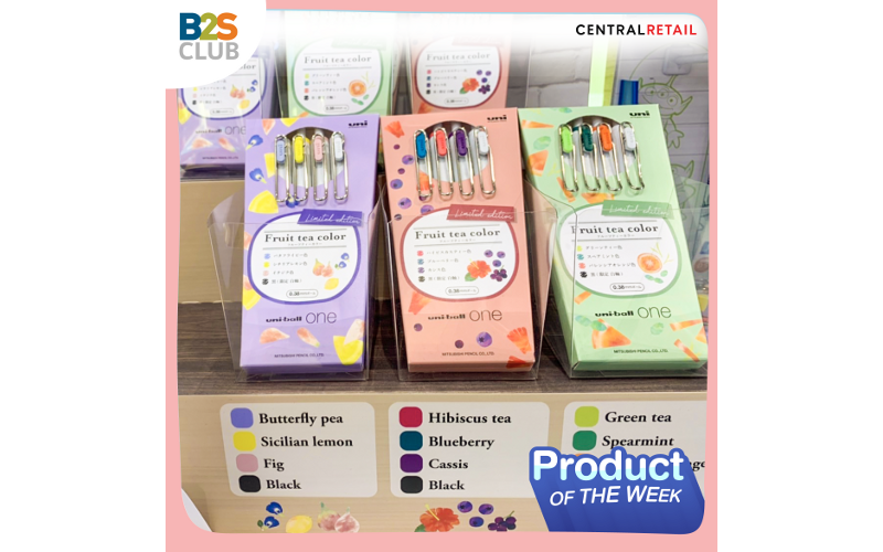 ใครไม่รู้ว่าจะจับคู่สีใช้งานแบบไหน มันก็จะมีชุดที่ออกมาเป็น limited edition รุ่น fruit tea ปากกาในกล่องนี้ จะเป็นหัวขนาด 0.38 ทั้งหมด และเป็นสีพิเศษโทนพาสเทลที่ไม่มีขายแยก ทุกกล่องจะมีปากกาสีดำมาให้ แต่ก็เป็นดีไซน์พิเศษ เพราะปกติแล้ว ปากกา uni-ball one สีดำ จะเป็นแท่งสีดำทั้งแท่งหรือขาวและดำตรงส่วนที่กด แต่ว่าตัวที่มาในเซ็ตนี้จะเป็นแท่งสีขาวล้วน