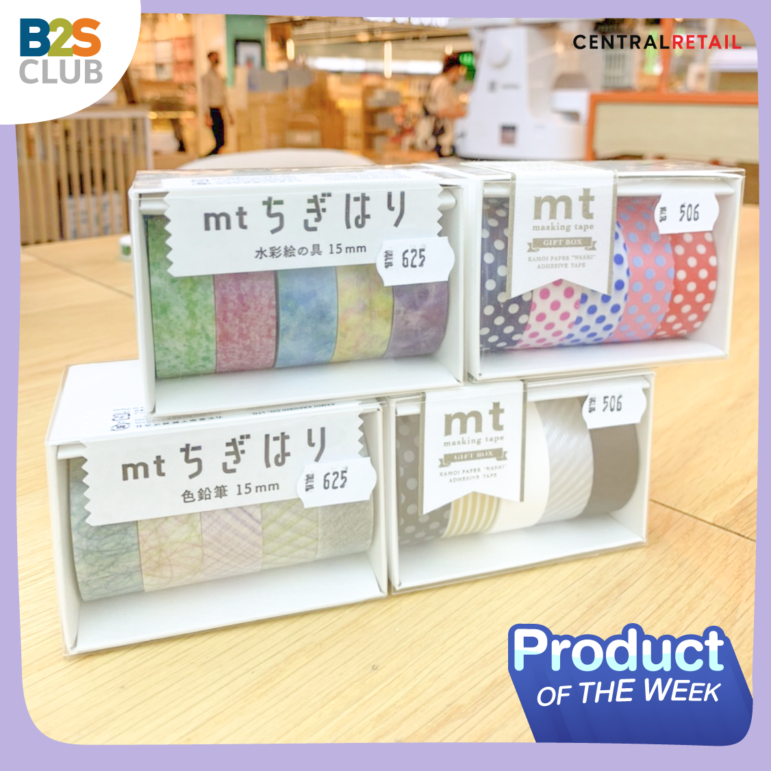 ในตลาดตอนนี้มี masking tape หลายแบรนด์ให้เลือก ถ้าเทียบแล้ว masking tape ของ mt ราคาอาจจะสูงกว่านิดหน่อย แต่ถ้าซื้อเป็นเซ็ตจะราคาถูกลง เรื่องคุณภาพของเทปถือว่าดีมากค่ะ แต่เพราะเทปเป็นกระดาษที่บาง ทำให้บางอันถ้าติดบนกระดาษที่มีลายอาจจะเห็นลายกระดาษซ้อนทับกันได้ B2S CLUB ชอบที่สามารถเขียนทับบนเทปได้ และมีลายเยอะมากควรค่าแก่การสะสม เมื่อเอามาตั้งเรียนกันบนโต๊ะทำงานก็ทำให้โต๊ะเราดูคิ้วขึ้นทันที ถ้าชาวคลับไปเดิน B2S ครั้งหน้า ลองซื้อมาใช้กันดูนะคะ
