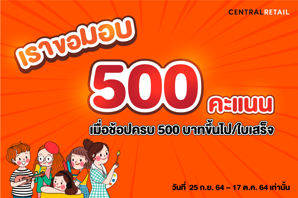 2. รับ 500 คะแนน เมื่อซื้อสินค้าที่ B2S ครบ 500 บาทขึ้นไป/ใบเสร็จ