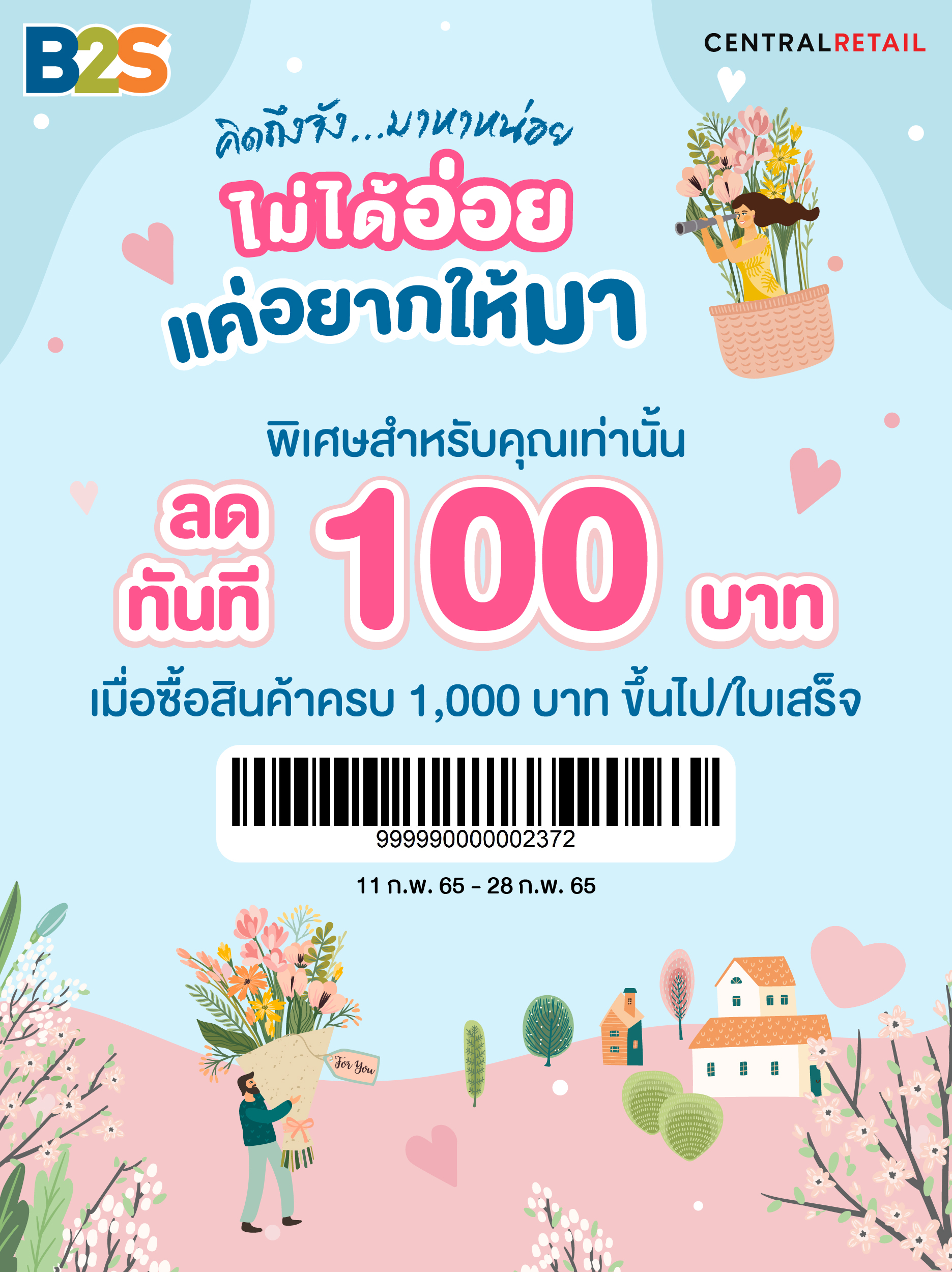 • แสดงคูปองแก่พนังงานก่อนชำระสินค้า เพื่อรับส่วนลด 100 บาท เมื่อซื้อสินค้าครบ 1,000 บาท ขึ้นไป/ใบเสร็จ