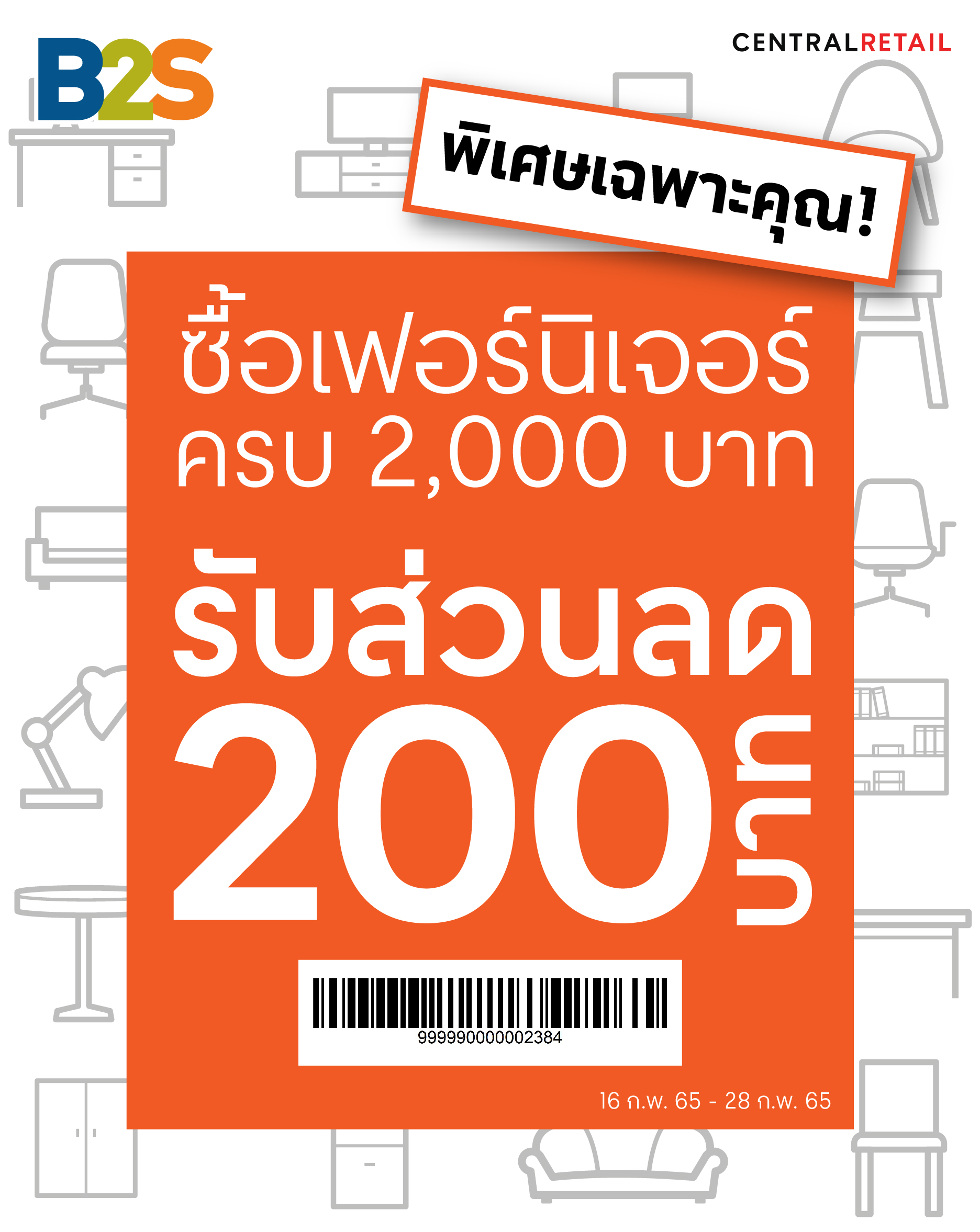 พิเศษเฉพาะคุณ! รับส่วนลด 200 บาท เมื่อซื้อเฟอร์นิเจอร์ที่ร่วมรายการ