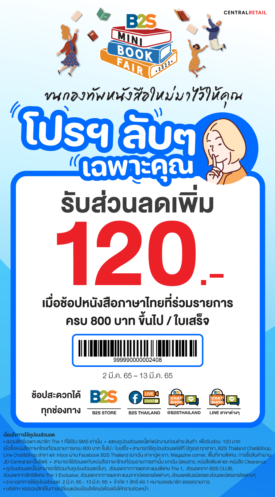 Secret deal for only you! Get 120 Baht on-top discount when shop 800 Baht on participated Thai book