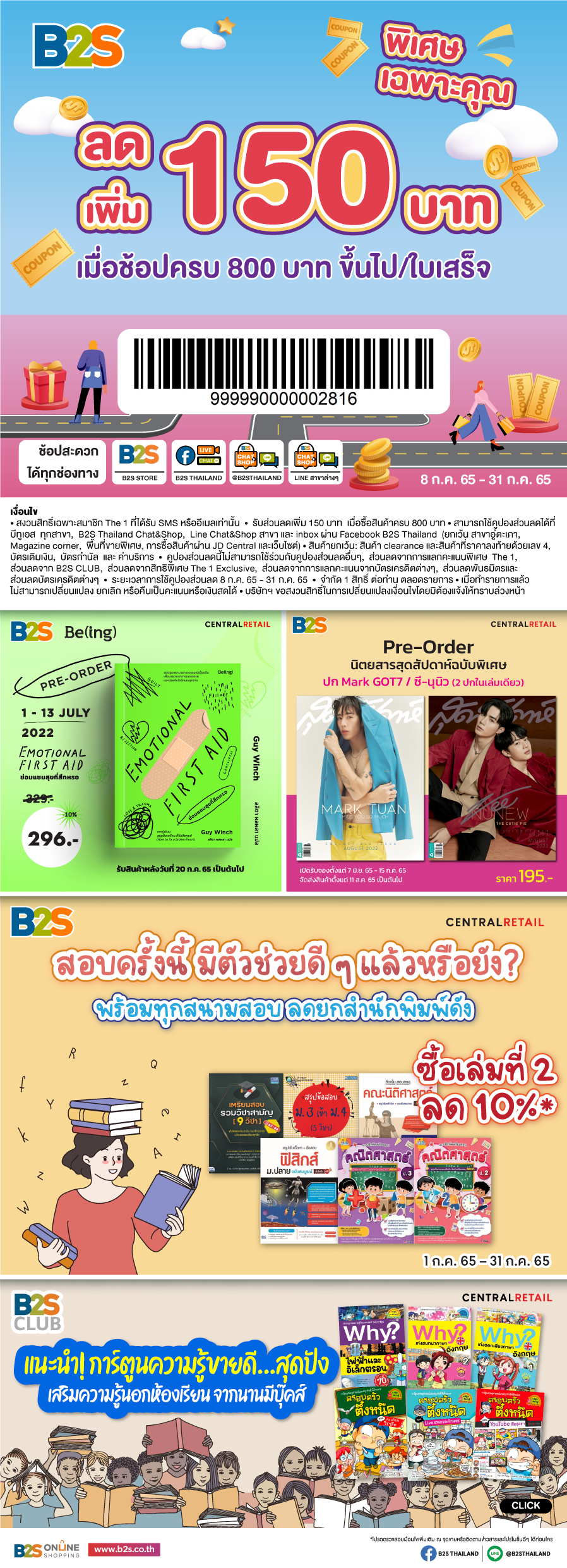 โปรฯ ลับ เฉพาะคุณเท่านั้น! รับส่วนลดเพิ่ม 150 บาท ช้อปได้ที่ B2S ทุกสาขา