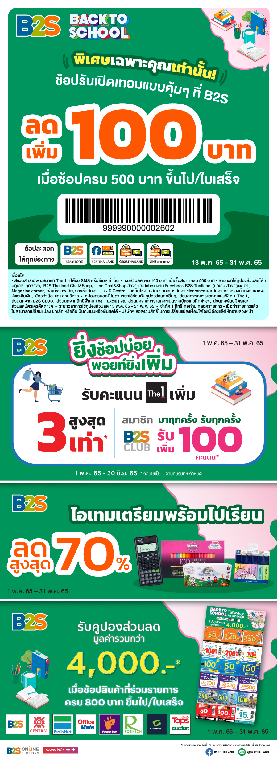 ช้อปรับเปิดเทอมแบบคุ้มๆ ที่ B2S เฉพาะคุณ ลดเพิ่ม 100 บาท