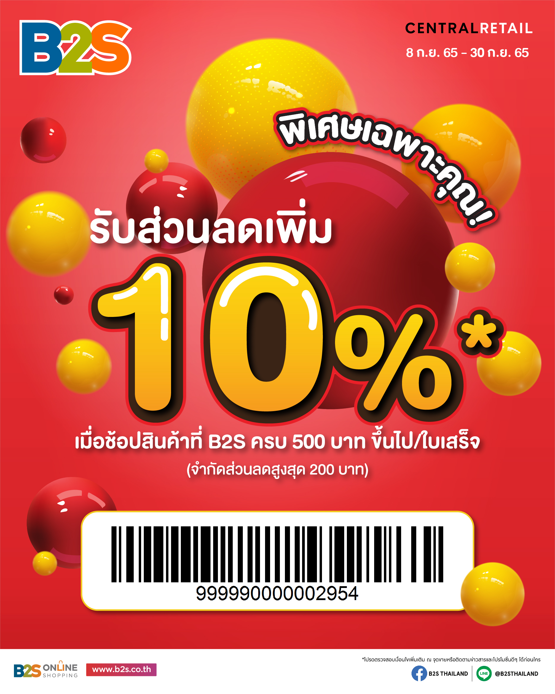 พิเศษเฉพาะคุณ! รับส่วนลดเพิ่ม 10% เมื่อช้อปที่ B2S ครบ 500 บาท