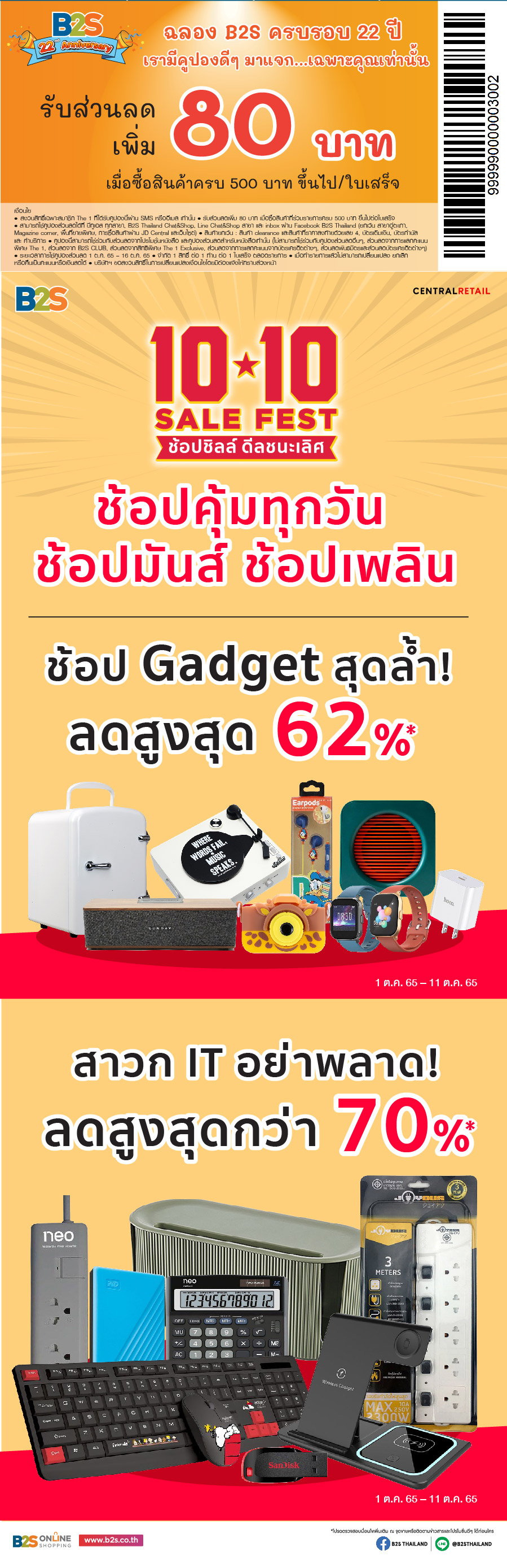 B2S ครบรอบ 22 ปี เรามีคูปองดีๆ มาแจก! ลดเพิ่ม 100 บาท พิเศษเฉพาะคุณ