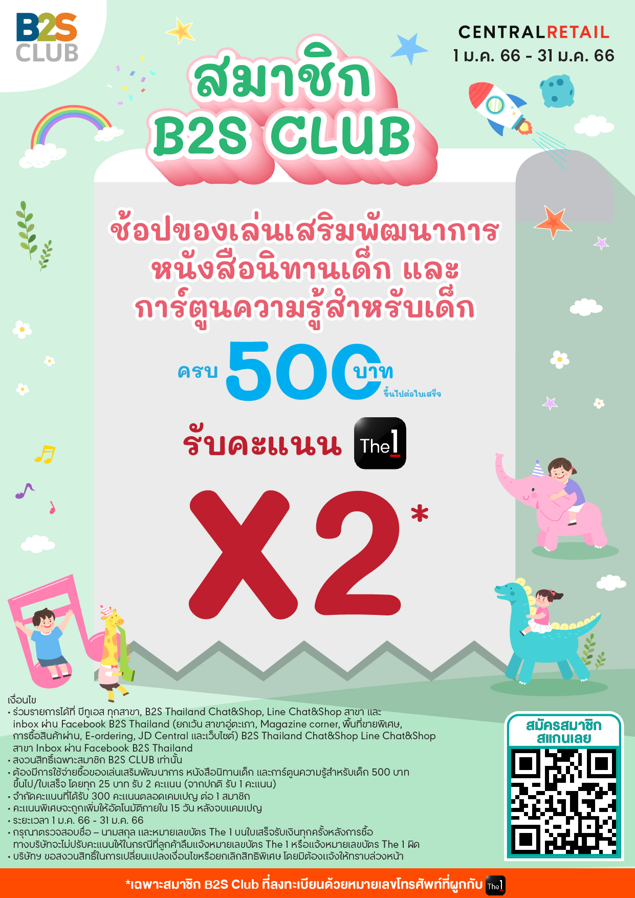 • สงวนสิทธิ์เฉพาะสมาชิก B2S CLUB เท่านั้น