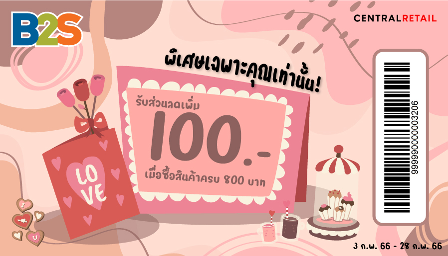 คูปองส่วนลดพิเศษ 100 บาท ฉลองเดือนแห่งความรัก สำหรับลูกค้าที่น่ารักอย่างคุณ