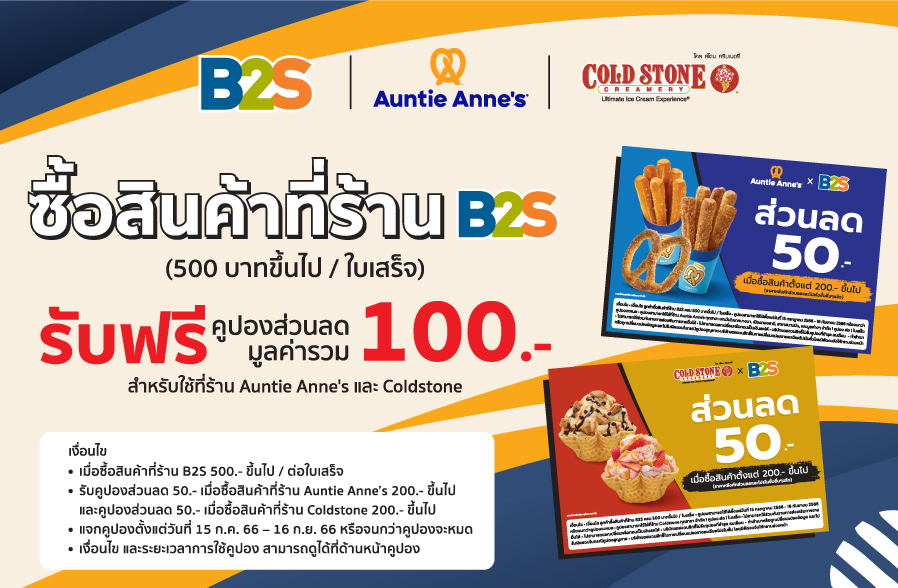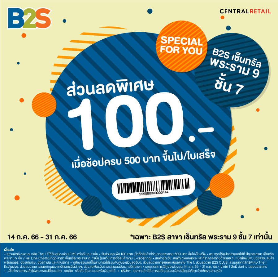 แจก! คูปองส่วนลดพิเศษ 100 บาท เอาใจขาช้อป...ให้ไปช้อปต่อแบบคุ้มๆ ที่ B2S สาขาเซ็นทรัล พระราม 9 ชั้น 7 เท่านั้น