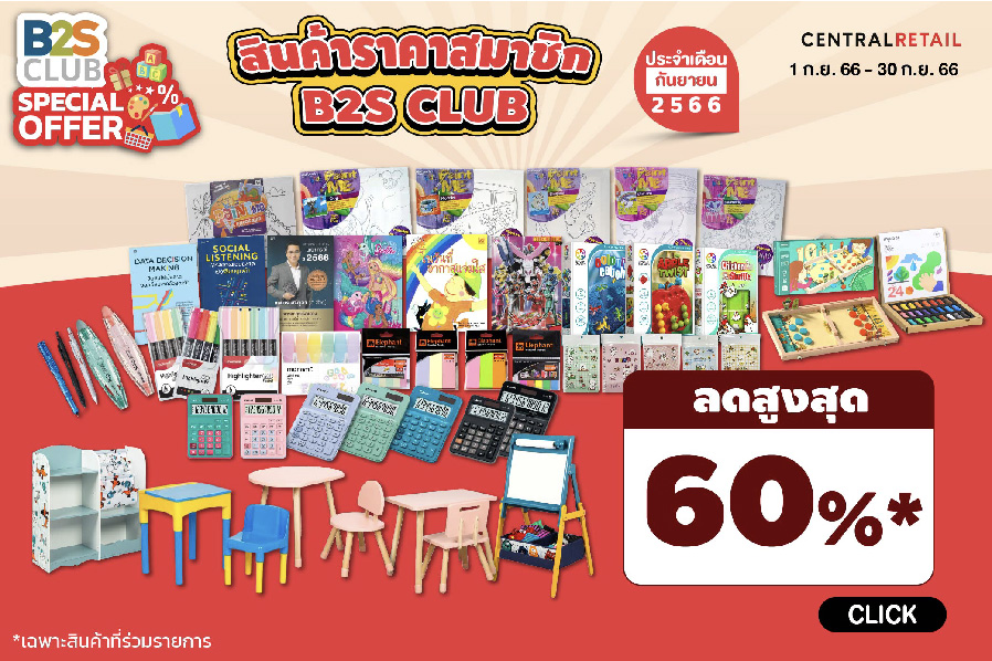 มาเป็นชาว B2S CLUB ด้วยกันนะ สมัครสมาชิก