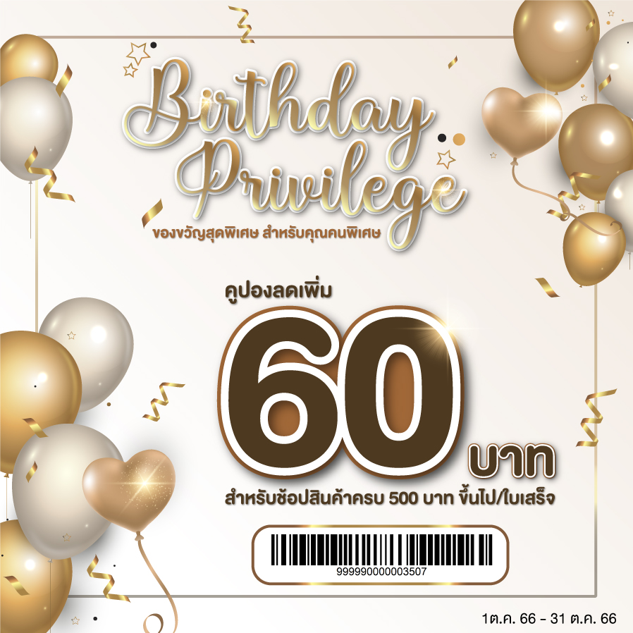 คูปองส่วนลดพิเศษ 60 บาท ฉลองเดือนเกิด สำหรับคุณคนพิเศษ!