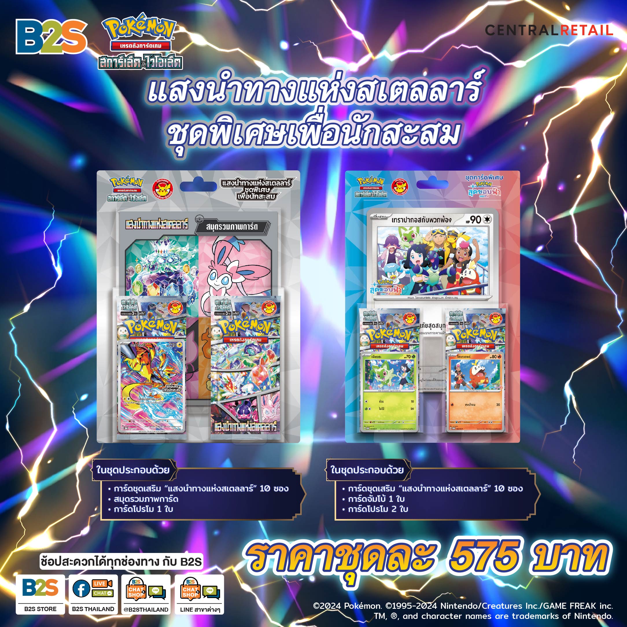 นอกจากนี้เตรียมพบกับสินค้าชุดพิเศษ แสงนำทางแห่งสเตลลาร์ ชุดพิเศษเพื่อนักสะสม และ ชุดการ์ดพิเศษ โปเกมอน เดอะซีรีส์ สุดขอบฟ้า มาให้เราได้ลองสัมผัสกับความสนุก