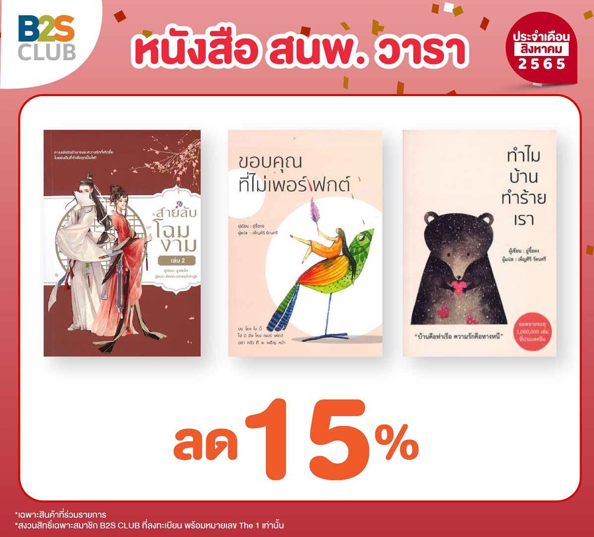 พลาดไม่ได้ เฉพาะสมาชิก B2S CLUB ซื้อวินค้าราคาสมาชิกประจำเดือน สิงหาคม รับส่วนลดสูงสุด 65%