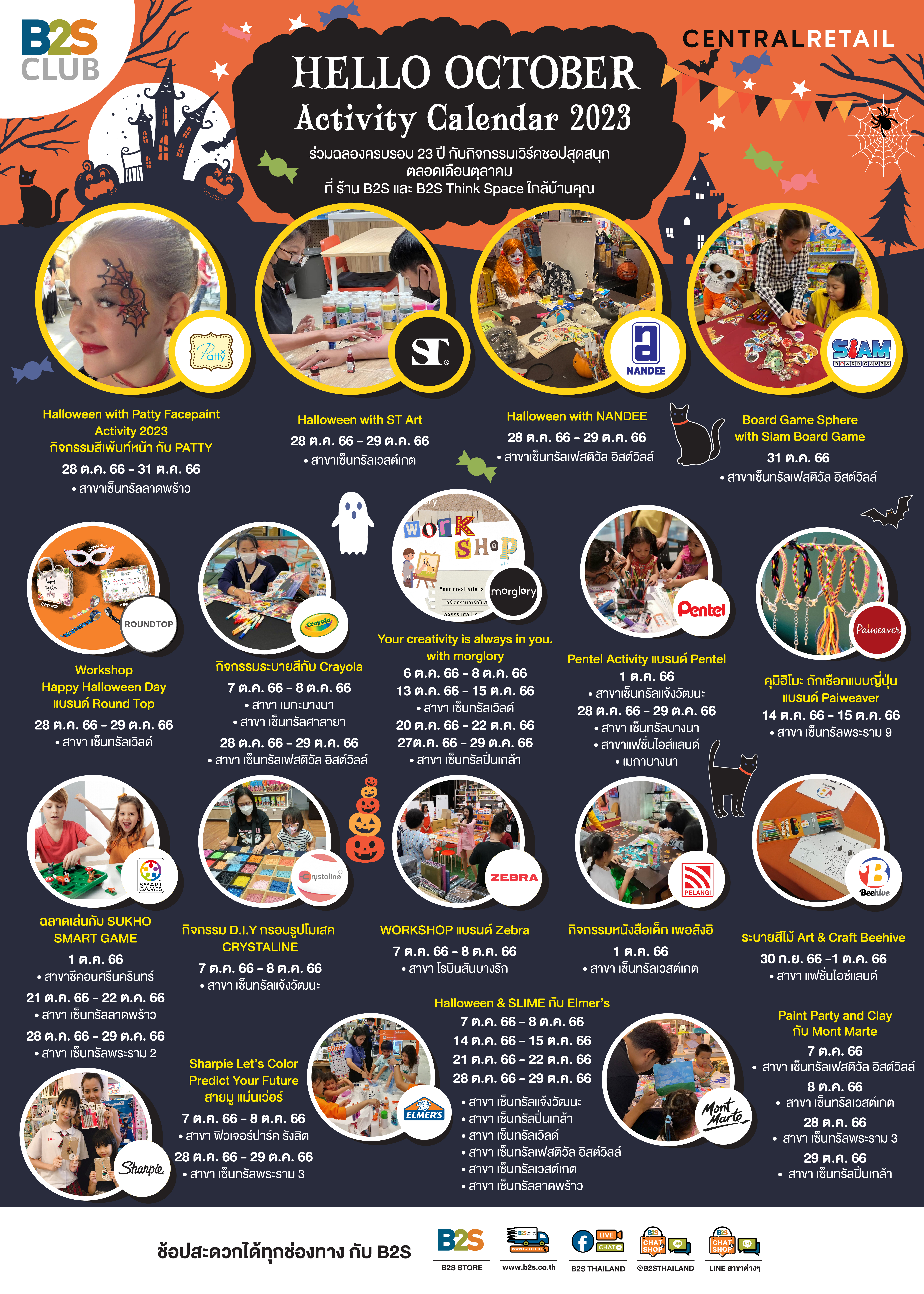 Hello October Activity Calendar 2023  ร่วมฉลองครบรอบ 23 ปี กับกิจกรรมเวิร์คชอปสุดสนุก ตลอดเดือนตุลาคม