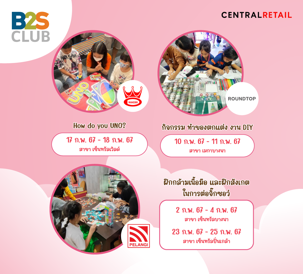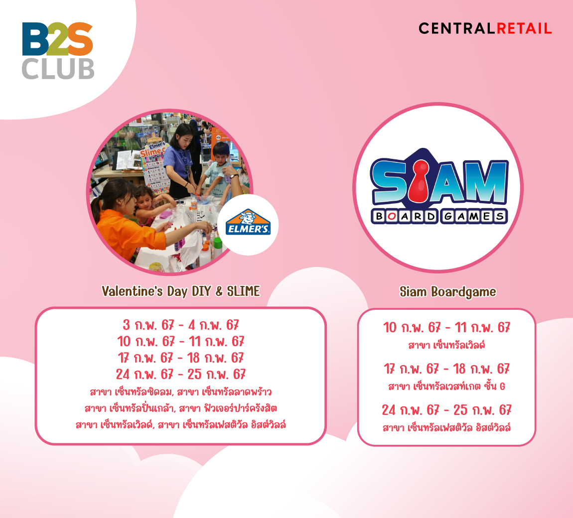 แล้วมาพบกับกิจกรรรมต่างๆจาก B2S Club และแบรนด์ดังจาง Elmer’s, Nara, My First, Siam Board Game และอื่นๆ