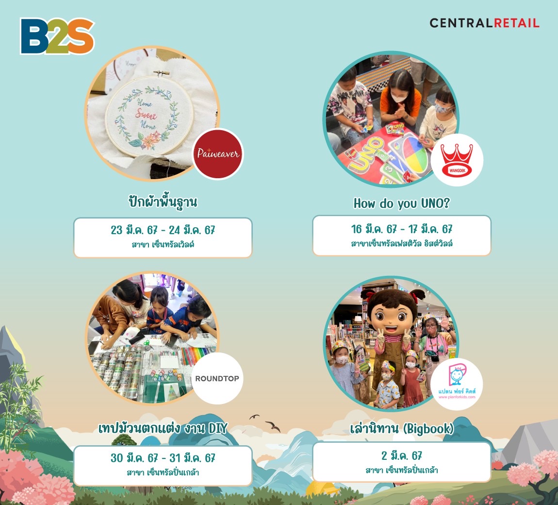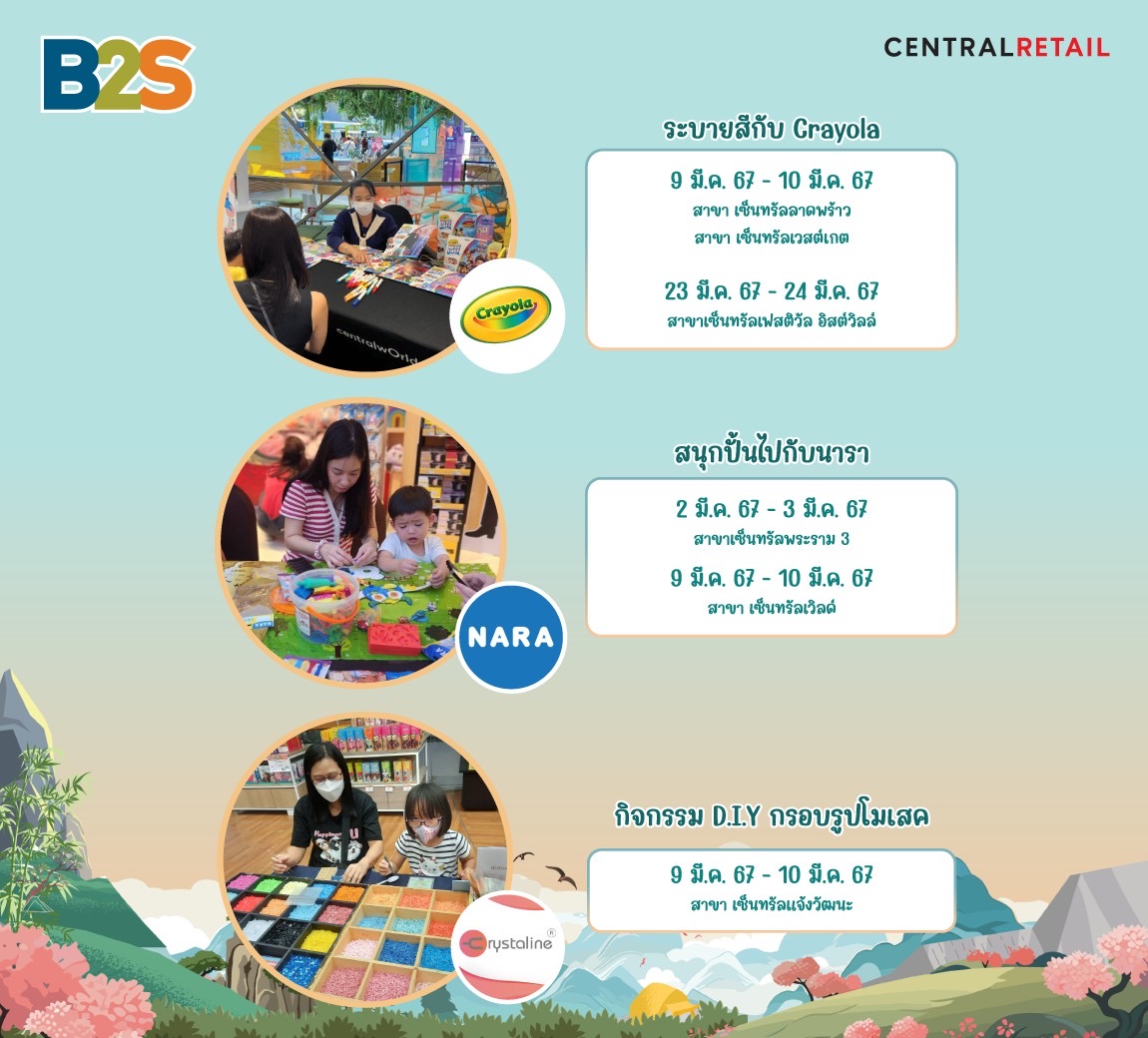 กิจกรรมเวิร์คชอปสุดสนุก และกิจกรรมอื่นๆอีกมากมายตลอดเดือน มีนาคม 2567 ในกิจกรรมที่จัดเตรียมเวิร์คชอปสุดพิเศษ!! ที่ร้าน B2S และ B2S Think Space สาขาใกล้บ้านคุณ